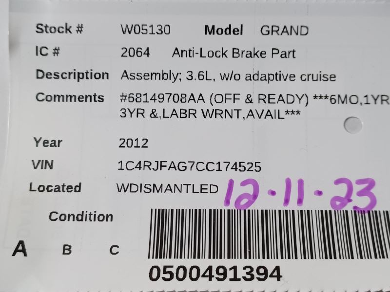 This ABS brake pump assembly is a perfect fit for my 2012 Durango—easy installation and works flawlessly! The quality feels OEM, and it restored my braking system’s performance without any issues. Great value for the price, and shipping was fast. Highly recommend for anyone needing a reliable replacement part!