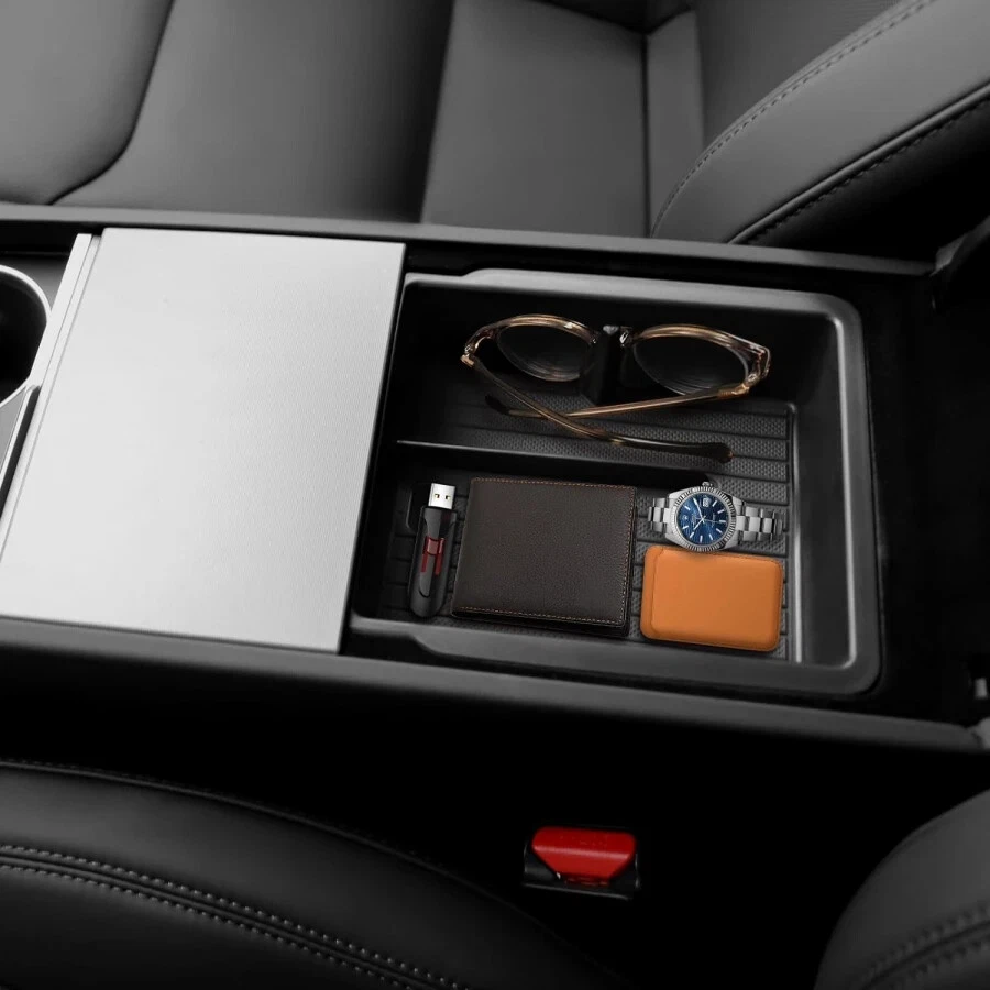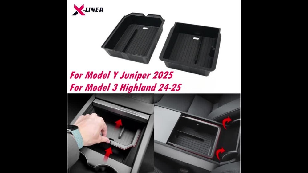 For Tesla Model Y Juniper 2025 & Model 3 Highland 2024 2025 ABS Center Console Organizer Tray Armrest Storage Box Accessories Features: This car organizer is customized for Newest Model Y Juniper 2025 & Model 3 Highland 2024 2025, please kindly check your car model before purchase Keep Your Newest Model 3/Y Tidy: This console organizer box will increase storage space and significantly improve space utilization. It makes the interior of your car tidier and cleaner. Upgraded Design: Cigarette lighter charging hole and cable hole are reserved in advance on center console organizer, which does not affect the original car design. Built-in glasses holder for storing glasses. Premium Material: This organizer is made of ABS material with nonslip mat, When this is dirty, just wipe them with wet tissue. Easy Installation: The organizer tray can be installed within several seconds without any tools, you can have a try. Not Fit Model 3 2021-2023 & Model Y 2020-2024
