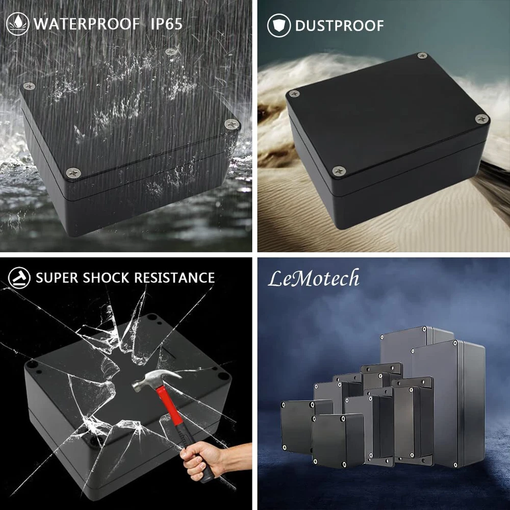 ABS Plastic Electrical Project Case Power Junction Box, Project Box Black 4.5" x 3.5" x 2.2" (115 x 90 x 55 mm)(Pack of 2) PRODUCT DESCRIPTION Description: This ABS project box brings a customizable experience. 1.Made of ABS material. Sturdy and terrific for making those DIY projects. Easy to drill and shape openings for many items meters, sockets, LEDs and so on. 2.Many screw holes inside in various places. If wanted to make one to go in it, such as attaching a board, there would be no problem mounting it. 3.100% brand new and high quality. Specifications: Product Name: Junction Box Outer Size of the black project box(Approx.): 4.5 x 3.5 x 2.2 inch(115 x 90 x 55 mm) Inner Size of the black project box(Approx.): 4.3 x 3.3 x 1.9 inch(108 x 83 x 48 mm)- -*Tips: in order to confirm the detailed installation dimensions, please refer to our detail image, which shows specific internal dimensions of the product. (Allowable Error: 2mm) Main Color: Black Main Material: ABS Waterproof Rating: IP65 Package Include: 2 x Junction Box 4 x Screws(Not Rustproof) PRODUCT FEATURES Product name: junction box, project box; Waterproof Rating: IP65 Ideal for electronic projects, instrument enclosure, power supply units, temperature controller box, etc High Quality Material: Made of ABS material, Sturdy and terrific for making those DIY projects. Easy to drill and shape openings for many items meters, LCDs, sockets, LEDs, buttons and so on. External Size of the project box :4.5 x 3.5 x 2.2 inch(115 x 90 x 55 mm), inner size of the electronic enclosure: 4.3 x 3.3 x 1.9 inch(108 x 83 x 48 mm)- - *Tips: in order to confirm the detailed installation dimensions, please refer to our detail image, which shows specific internal dimensions of the product. (Allowable Error: ±2mm),Thickness: 0.12in/3mm Package Content: 2 x Junction Box, 4 x Screws(Not Rustproof) 🚚 SHIPPING We offer fast and reliable shipping. Your order will be processed within 1-2 business days. International shipping is available to most countries. All items are securely packaged to ensure safe delivery. 🔄 RETURNS If you are not satisfied with your purchase, you can return it within 30 days for a full refund. Refunds will be processed to your original method of payment. Items must be returned in their original condition and packaging. 💳 PAYMENT We accept payment via PayPal, credit cards, and other payment methods supported by eBay. Please ensure your payment method is correct and updated to avoid any delays in processing your order. ⭐ FEEDBACK We value your feedback. If you are happy with your purchase, please leave us a positive review. 📞 CONTACT US If you have any questions or need further assistance, please feel free to contact us through eBay messages.
