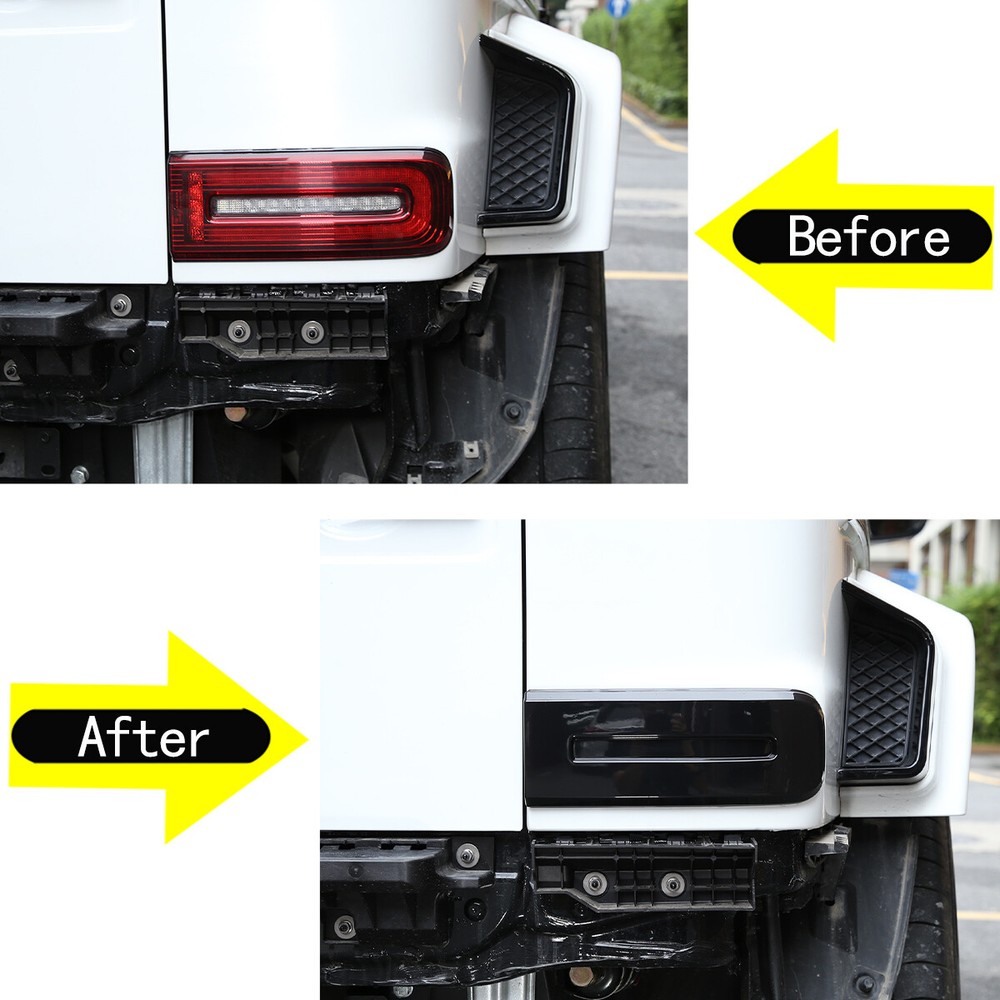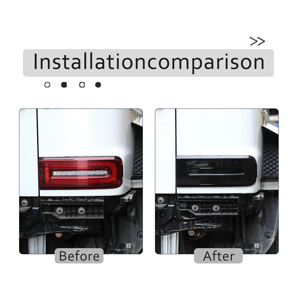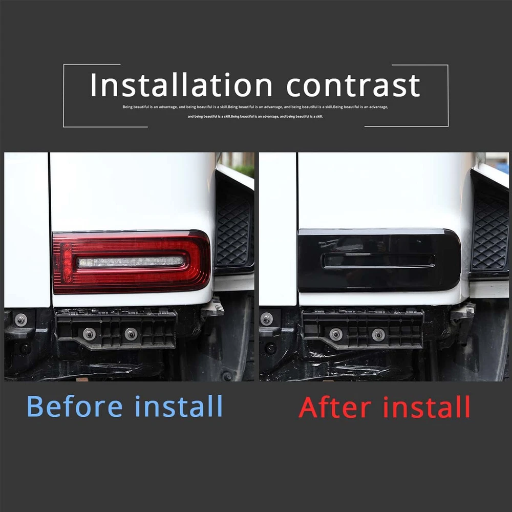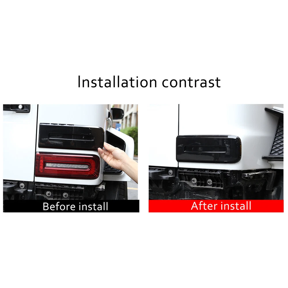 Compatible Vehicles: For Mercedes-Benz G-Class 2019-2022 Item Description: Item Name: Tail Light Lamp Cover Material: Made Of High Quality ABS Colour:Smoked Blacken Package : 2 Pcs /Set Product Introduction: MATERIAL--100% brand new. Strict factory QC test, high quality guarantee. APPLICATION--Provide a premium and stylish decor for your car, cover existing scratches and decorate your car. FEATURES--Made of use superb surface treatment technology for protection, anti-corrosion, fading protection and years of trouble-free use. DESIGN--Perfectly match with your original car. It can bring luxurious decoration upgrades to your car. Installation Tips: 1. Easy installation, comes with self-adhesive tape, no any modification needed. 2. First check the area or location on the vehicle where this product needs to be installed. Please have the surface complete clean. 3. Peel off the cover and tape the item in the correct position of the vehicle. 4. You can also use a hairdryer to sufficiently heat the tape, this will allow the adhesive to better activate and bond to the corner.