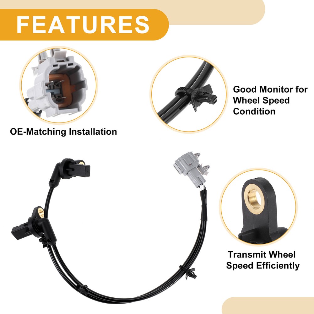 This ABS wheel speed sensor is a perfect fit for my 2010 Pathfinder—easy to install and works flawlessly. The reinforced design gives me confidence in sudden braking, and the signal accuracy is spot-on. No more ABS warning lights, and the build quality feels durable. Highly recommend for a smooth, safe ride!