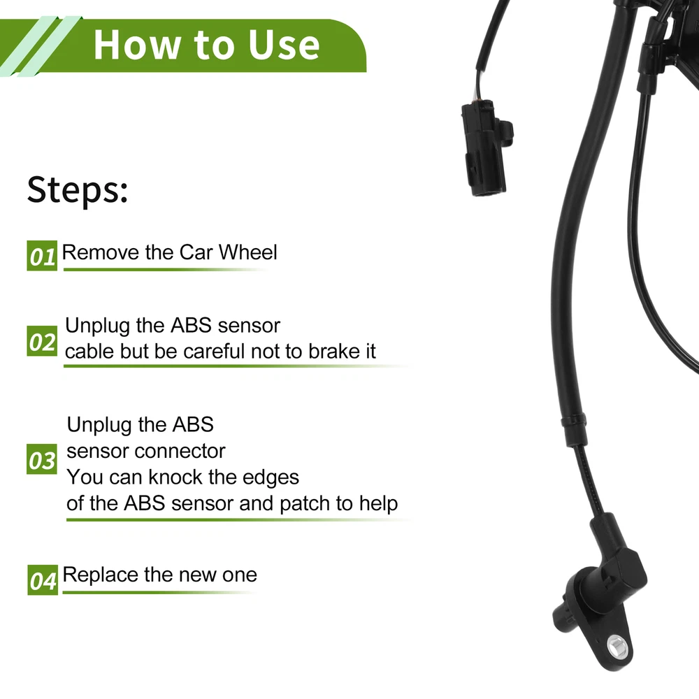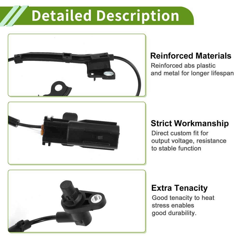 Document Model:for Toyota Allion 2007-2012OE Number:8954220180Application:Pin Number: 2 PinsPlacement on Vehicle: Front RightMaterial: Plastic, Rubber, MetalColor: BlackPackage Content: 1 Pc ABS Wheel Speed SensorProduct Characteristics:ABS wheel speed sensor plays an important role in monitoring your wheels' speed and sending signals to the ABS controller.Our reinforced wheel speed sensor will keep your car from skidding or sliding when you brake suddenly.You will get accurate and rapid signal measurement of wheel speeds to optimal braking performance.Made of quality abs plastic and metal materials to withstand the harsh road conditions.Easy To Install: Easy Installation.Remove the car wheel, unplug the ABS sensor and sensor connector, then replace the new abs sensor.Attention:This is Non-OEM product, accessory Only!Please make sure your vehicle information before placing an order! Hot Item Shop Category New Arrival ABS Wheel Speed Senor ABS Sensor No.8954220180 for Toyota Allion Front Right Model: for Toyota Allion 2007-2012 OE Number: 8954220180 Application: Pin Number: 2 Pins Placement on Vehicle: Front Right Material: Plastic, Rubber, Metal Color: Black Package Content: 1 Pc ABS Wheel Speed Sensor Product Characteristics: ABS wheel speed sensor plays an important role in monitoring your wheels' speed and sending signals to the ABS controller. Our reinforced wheel speed sensor will keep your car from skidding or sliding when you brake suddenly. You will get accurate and rapid signal measurement of wheel speeds to optimal braking performance. Made of quality abs plastic and metal materials to withstand the harsh road conditions. Easy To Install: Easy Installation.Remove the car wheel, unplug the ABS sensor and sensor connector, then replace the new abs sensor. Attention: This is Non-OEM product, accessory Only! Please make sure your vehicle information before placing an order! Item Specifics Net Weight 108g OE/OEM Part Number 8954220180 Manufacturer Part Number 8954220180 Brand X AUTOHAUX Placement on Vehicle Front Right Product Name ABS Wheel Speed Sensor Shell Color Black Package Content 1 Pc ABS Wheel Speed Sensor Note This is not oem product,accessory only. You Should Know If you have any questions, please feel free to contact our customer service. Our response will be faster than eBay ! Our Handling Time: within 24 hours on weekdays eBay Handling Time: 72 hours About Us Shipping Feedback Payment Contact Us About Us Angstrom Autohaus is based in Hong Kong, our group comprises factories in Asia that manufacture OEM and aftermarket automotive parts and accessories. We believe in FACTORY DIRECT purchases. Our mission is to deliver Lower Prices and Better Quality to consumers and distributors wherever, whenever. We operate from a distribution center in Hong Kong, where we perform sourcing, quality control and fulfillment. We strive to ensure that our products are reliable, updated and that our transactions are smooth and speedy. We are positioned to bring you the latest consumer automotive aftermarket parts and accessories globally and round the clock. We are proud to have served over 500, 000 ebay buyers worldwide. Shipping Import duties, taxes and charges are not included in the item price or shipping charges. Buyers are responsible for these charges. Please check with your country's customs office to determine what these additional costs will be prior to bidding/buying. Note that delivery times may vary, particularly during peak periods or inclimate weather conditions. All items will be dispatched from our warehouse in China or Hong Kong directly. Due to Custom restrictions, we do not ship lighters to US We cannot ship on weekends and we do not offer Saturday, Sunday or holiday delivery. All our items will be shipped to buyer's PayPal address, please confirm your address on PayPal before you bid. Feedback We left positive feedback for you after receiving payment. Your feedback is very important for us, positive feedback and 5 Score DSR is highly appreciated. Please let us know before leaving any negative feedback or 1 point, 2 point low DSR or open any disputes on Paypal and Ebay, please give us the opportunity to resolve any problems and we will try our best to satisfy your needs. If any question, please feel free to contact us via 'Ask seller a question', We try our best to reply to your emails as soon as possible, due to high volume of daily incoming emails and time zone difference, we may not be able to reply your emails immediately.Please allow 1-2 business days for us to response. Contact Us This is the payment method we can accept: Contact Us Please email us to resolve any problem before you leave any feedback to us. We will reply you via email ASAP, if no response for you within 48 hours, please check the spam / junk folder in your mail box. Description Policy ABS Wheel Speed Senor ABS Sensor No.8954220180 for Toyota Allion Front Right Model: for Toyota Allion 2007-2012 OE Number: 8954220180 Application: Pin Number: 2 Pins Placement on Vehicle: Front Right Material: Plastic, Rubber, Metal Color: Black Package Content: 1 Pc ABS Wheel Speed Sensor Product Characteristics: ABS wheel speed sensor plays an important role in monitoring your wheels' speed and sending signals to the ABS controller. Our reinforced wheel speed sensor will keep your car from skidding or sliding when you brake suddenly. You will get accurate and rapid signal measurement of wheel speeds to optimal braking performance. Made of quality abs plastic and metal materials to withstand the harsh road conditions. Easy To Install: Easy Installation.Remove the car wheel, unplug the ABS sensor and sensor connector, then replace the new abs sensor. Attention: This is Non-OEM product, accessory Only! Please make sure your vehicle information before placing an order! Item Specifics Net Weight 108g OE/OEM Part Number 8954220180 Manufacturer Part Number 8954220180 Brand X AUTOHAUX Placement on Vehicle Front Right Produc