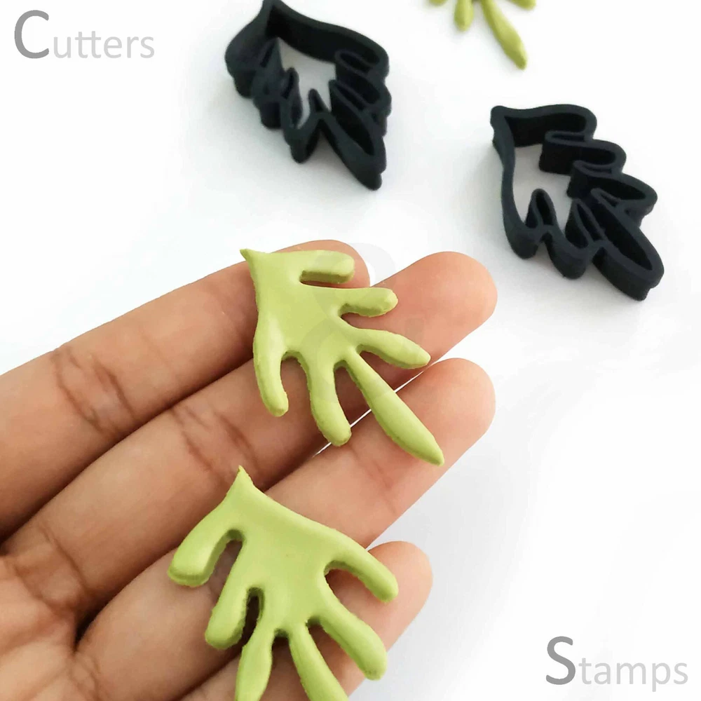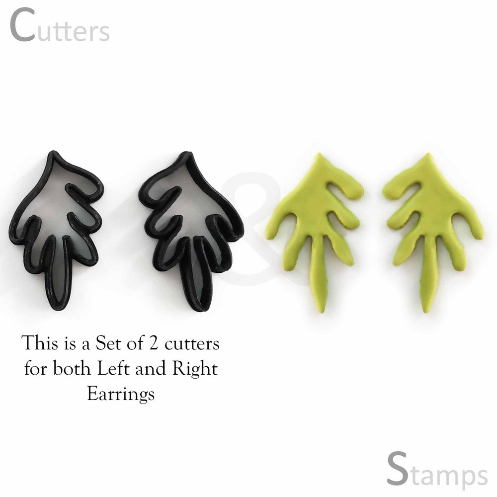 ABSTRACT LEAF | Polymer Clay cutter | Earring Clay cutter | Leaf Clay Cutters | ●● HIGHLIGHTS ●● - These Abstract Leaf cutter make a great dangle earring set. - It comes in a set of 2 cutters for both Left and right earrings. - The cutters work best with a thin sheet of rolled out clay. Thicker clay might get stuck into the cutters since they are very intricate. Hope you have fun getting creative. ●● RECOMMENDATIONS ●● - Apply pressure firmly and evenly on to the cutters to press down the clay to cut all the way through. Don’t apply sideways pressure as this would distort the clay shape. - Make sure to trim the edges if there is any excess before backing so that you spend less time sanding the pieces. ●● CARE ●● - Hand wash at normal or light warm water - Before washing, You can use a sharp object to remove clay stuck in the cutters into any intricate corners or gaps - Do not expose or store the cutters next to high temperature Thank you so much for supporting a small business. Please do reach out to me if you have any concerns or questions .