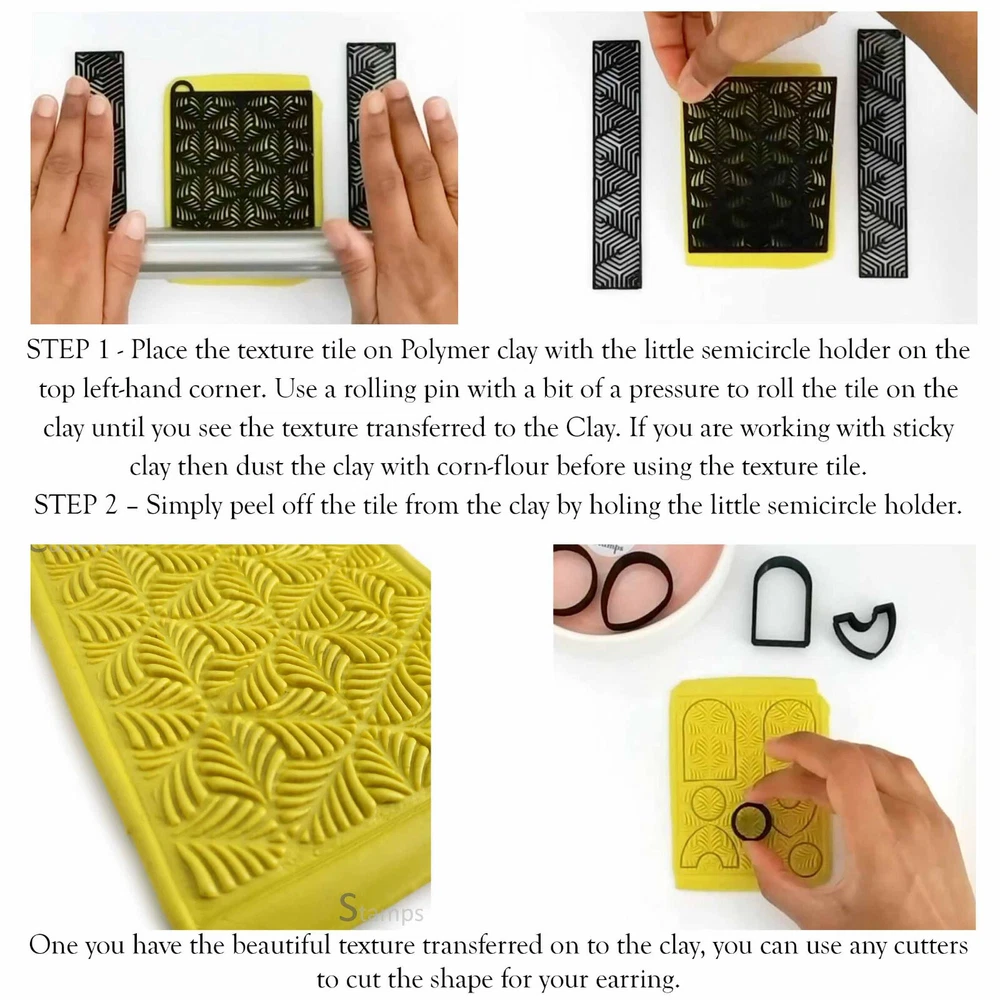Abstract Line Pattern Texture Tile | Texture Stamp | Textures for Clay imprints | Polymer clay texture | ●● DESCRIPTION ●● Texture Tile adds crisp textures to your clay projects, hope you have fun working with the texture tile. Please read below for instruction on how to use the texture tile. - Place the texture tile on your conditioned rolled out clay slab and press the corners down to your clay with your fingers so that they don't move when you use a rolling pin to roll the tile on to your clay. - The Texture tiles are available in Small and Large size. Refer to photos for the size of tile that is perfect for your project. Checkout our store to view similar textures and Clay cutters - https://www.ebay.com.au/str/cuttersandstamps ●● CARE INSTRUCTIONS ●● - The material of the Cutter and Texture roller is PLA Eco Plastic so keep away from heat temperature higher than 70 °C - Wash before first time use. - Hand wash only.