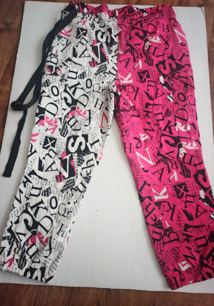 The Like An Angel Women's Pants in size 3X feature a stylish graphic print with pink, black, and white colors, making them perfect for various occasions such as travel, parties, or casual wear. These jeggings have a pull-on closure, high rise, and stretchy material for comfort. The pants also include convenient cargo pockets and are machine washable, making them a practical and fashionable choice for the fall and spring seasons. Designed with a flat front and a unique New York fashion accent, these pants are a trendy addition to any woman's wardrobe. The leg bottom has elastic and fit tightly around the bottom. This 3x runs small so it fits more like a 2x.