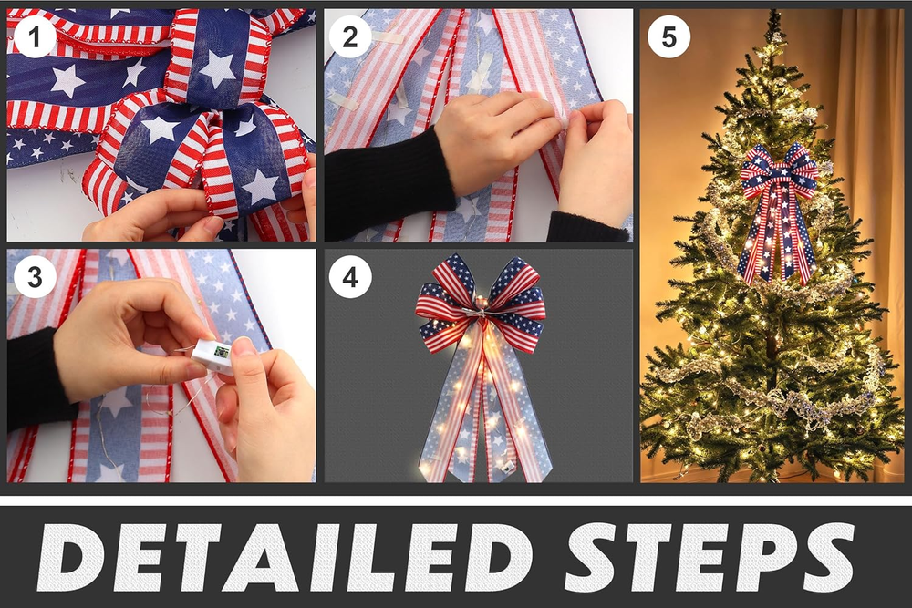 Store New Arrivals Add to Favorite View Feedback Contact ABTOLS Large LED Patriotic Wreath Bow for Front Door, 4Th of July Red Blue White Stars and Stripes Bows for Wreath American Flag Star Bows for Indoor Outdoor Memorial Day Party Door Wall Fence Decor Description Item Weight 2.08 ounces Batteries required No Manufacturer ABTOLS Color Bow5 Led Package Dimensions 11.1 x 3.62 x 2.99 inches Patriotic style bow: you will get 1 piece of 4th of July LED patriotic star wreath bow, which is designed to be multilayered and three-dimensional, featuring an atmosphere of rejoicing and festivity and bringing you lots of fun to your July 4th party. Patriotic Tree Topper Bow Material: This decorative wreath bow is made of premium plaid cloth, with big bowknot shape, simple but fashion, durable and handmade, lightweight and long-term for you to apply, also not easy to break or fade. Appropriate dimensions: This Veterans Day bow measures 11.42 inch wide and 20.87inch long, which is large and prominent, suitable as centerpiece decoration. Red Blue White Stripe Bows Easy to Use: take out the Memorial Day America flag wreath bows, organize the details, you can restore perfection. Put down the ribbon, then put it on the door, Ideal hanging accessories for archway or wall while Veteran's Day, Christmas,Thanksgiving, Memorial Day, 4th of July, Independence Day Decorations. Can be used for prom, party, church meetings, dancing party, summer picnic, wedding or any other special soiree decoration. Farmhouse Large Gift Bow Wide Application: DIY yarn ornament bows are suitable for kinds of occasions, can be widely applied in 4th of July party or activities, home decors,attach the bow to wreaths, arches, stairways, chairs and other DIY craft projects.Use and satisfy your various decoration requirement in daily life, you can also share them with others. Specifications: Material: polyester,yarn Color: as the pictures shown Size: approx. 20.8 x 11.4 inch (L x W) Quantity: 1 piece Package includes: 1 x Independence Day LED Wreath Bow Warm notes: Manual measurement, please allow slight errors on size. The color may exist slight difference due to different screen display. Please keep the 4th of July wreath bow away from fire. ABOUT US We offer the best prices around on high quality products. Our E-store includes media such as books, movies, music and games while offering electronics, toys, sporting apparel, clothing, tools, general home, garden items and more. SHIPPING We are always working hard to ensure your package arrives as soon as possible. Please understand that some factors like weather, high postal traffic, and the performance of shipping companies are outside of our control. We offer free shipping to the lower 48 states and ship within 2 business days of payment, usually sooner. We do not accept P.O. Boxes. Please provide a physical address. RETURNS We offer a 30-Day Return Policy on items which you are not completely satisfied with. You have the option for a full-refund or an exchange of the item. No returns are available on items shipped outside of the USA. PAYMENT We accept PayPal. CONTACT US This page content is yet to come Please ad us to your favorite seller and visit again later Thank You CUSTOMER SATISFACTION We try our very best to make sure every customer is completely satisfied. If there's a problem, message us! We're happy to help.