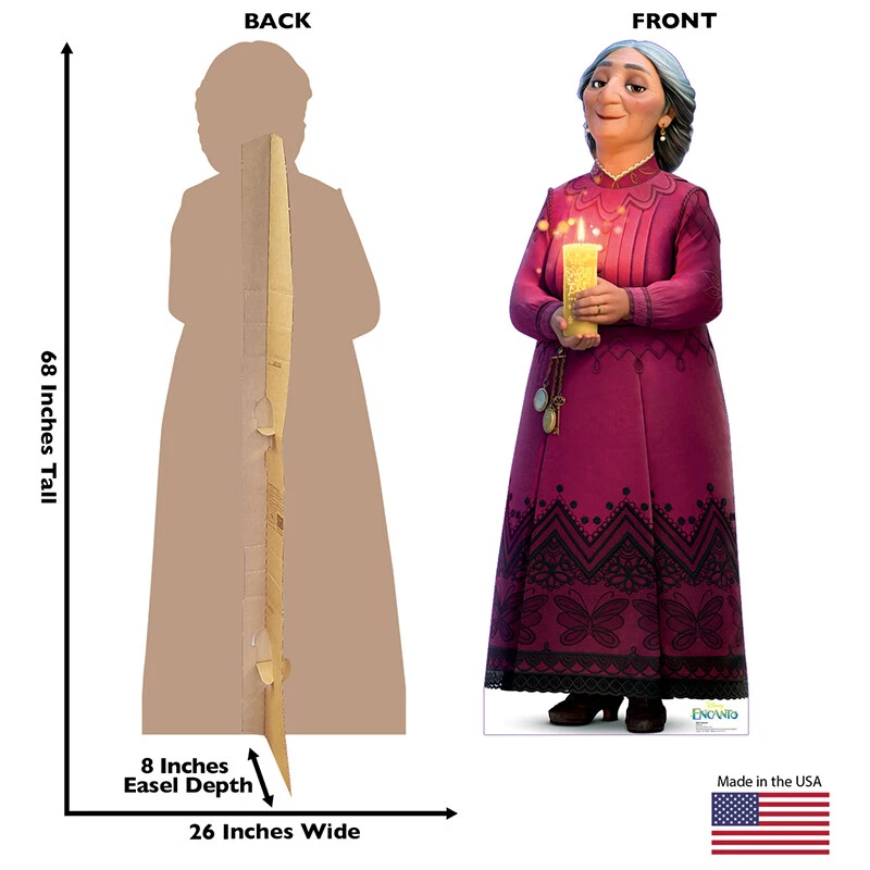 ABUELA ALMA MADRIGAL "Encanto" Cardboard Cutout Standup / Standee We have a huge variety of great cardboard cutouts in our eBay Store . Check it out! ABUELA ALMA MADRIGAL "Encanto" Cardboard Cutout Standup / Standee CONTACT US DESCRIPTION In Disney's 2021 animated musical Encanto , a Colombian family lives in a magical house where most of the occupants have amazing powers. Heading up the Madrigal family is 75-year-old Abuela Alma (voiced by actress Maria Cecilia Botero), who appears on this lifesize (5' 8" tall) cardboard cutout. You can hang it on a wall like a poster, or use the attached easel fold-out piece to make it free-standing. Comes folded for shipping purposes. This item is printed to order and most orders go out within 2 business days but please allow up to 5 business days for printing, especially during peak periods. Shipping typically takes an extra 2-5 business days. PRODUCT SPECIFICATIONS Dimensions 68" H x 26" W CUSTOMER SERVICE We pride ourselves on delivering top-notch customer service, both before and after the sale. You can always contact us at the link above and we'll do our best to answer any questions or resolve any issues you might have. SHIPPING Items are usually shipped via UPS or USPS. Sorry, but we cannot ship to PO Boxes. We may offer international shipping on some items, which is handled via eBay's Global Shipping Program. We do NOT offer expedited shipping at this time. PAYMENT TERMS Payments are handled by eBay or PayPal. Payment must be made immediately when purchasing item(s). PROBLEMS & RETURNS If an item is damaged during shipping or if you feel an item is not as described, please contact us directly so we can resolve the issue. If an item needs to be returned, please contact us first so we can provide you with an RMA number and mailing address. Items returned for any other reason may incur a 15% restocking fee. Images, contents and template design are © Copyright 2017-2022 by Synergy Publishing, LLC. Do not use without permission.