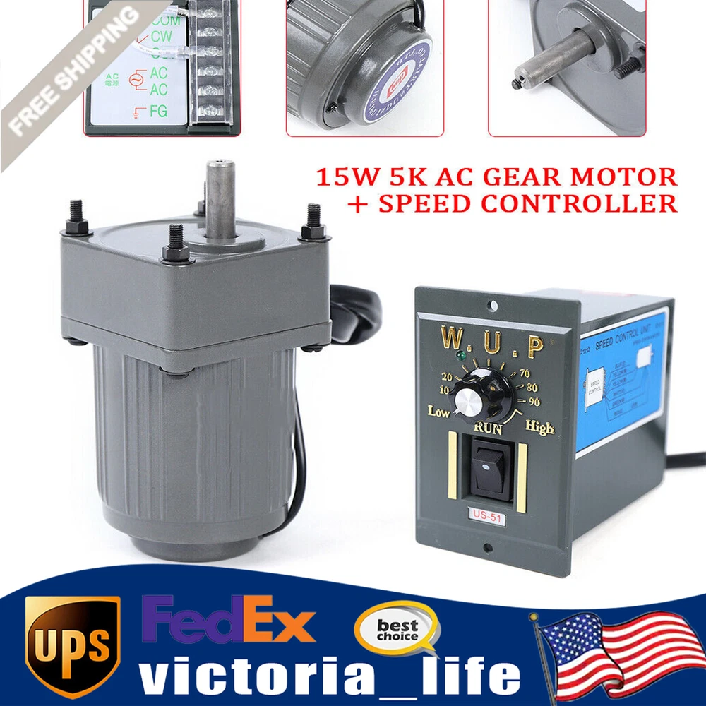 110V 15W 5K gear motor 270~0RPM with speed controller NoteBased on the industrial standard, to meet different needs of customers, our motor does not include the power cord, you need to purchase the power cord to connect. Specification: l Name: geared ac motor l Rated voltage: AC 110V l Rated speed: 270 RPM/min l Reduction ratio: 1:55K l Power Phase: single-phase motor l 15W Gear Motor:70mm*70mm*134mm, Axis Length 30mm Features: l Large torque. l Various optional speeds. l Strong stability. l Adjustable speed. Note: Speed ratio 1:5(270 rpm/min) , gearbox without gearbox is 1350 rpm/min. Product List: l 1 X Electric machinery l 1 X Reduction gearbox l 1 X governor AC 110V Gear Motor Electric Variable Speed Reduction Controller 1:5 270 RPM 15W 110V 15W 5 K gear motor 270 ~0RPM with speed controller NoteBased on the industrial standard, to meet different needs of customers, our motor does not include the power cord, you need to purchase the power cord to connect. Specification: l Name: geared ac motor l Rated voltage: AC 110V l Rated speed: 270 RPM/min l Reduction ratio: 1:5 (5K) l Power Phase: single-phase motor l 15W Gear Motor:70mm*70mm*134mm, Axis Length 30mm Features: l Large torque. l Various optional speeds. l Strong stability. l Adjustable speed. Note: Speed ratio 1: 5 ( 270 rpm/min) , gearbox without gearbox is 1350 rpm /min . Product List: l 1 X Electric machinery l 1 X Reduction gearbox l 1 X governor Payment Delivery details Terms of sales About us Contact us Payment We accept ebay payment 。 Fees such as import duties, taxes are not included in the item price or shipping costs. These charges are the buyer's responsibility. Delivery details Shipping: 2-9 working days to: USA Terms of sales We maintain high standards of excellence and strive for hundred percent customer satisfaction. Feedback is very important to us. We hope that you contact us immediately before you give neutral or negative feedback, so that we can address your concerns. It is impossible to address issues if we do not know about them! About us Your satis faction is our ultimate goal. We work hard to earn your trust and future business. Our certified technicians have tested each item before shipping. The unit comes with 1 year limited warranty on all manufacturing defects. a) If you receive a defective item, you may return it or ask for a discount. Please contact us within 14 days after you receive the package. b) What you returned must be intact and in its original packaging as re? u. Customer is responsible for shipping costs of the returned item. c) We will cover the cost of shipping back t with the shipping rate indicated in the registration page. We will send you a new unit or refund the full payment you paid. Thank you. Contact us Business Hour Business Hour: Monday To Friday: 8:30 AM to 5:00 PM (Beijing China time) Due to time zones, our reply to your questions may not be immediately. But within above working time, we will reply your email within 24 hours. If it's non-workdays, please kindly be patient and wait till Monday. Please contact us with ebay message. Please feel free to contact us if you have any questions. Monday To Friday: 8:30 AM to 5:00 PM (Beijing China time) Due to time zones, our reply to your questions may not be immediately. But within above working time, we will reply your email within 24 hours. If it's non-workdays, please kindly be patient and wait till Monday. Please contact us with ebay message. Please feel free to contact us if you have any questions.