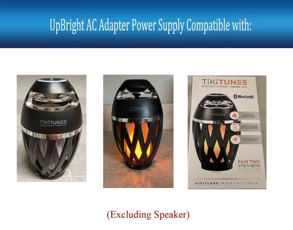 For sale is a brand new replacement AC Adapter Charger Power Supply: Features and Specification: Worldwide Input Voltage: 100-240VAC/50-60Hz Intelligent chip inside Output Protection: Complete OVP, OCP, SCP Protection: OVP: Over Voltage output Protection OCP: Over Current output Protection SCP: Short Circuit output Protection High efficiency and low power consumption In great working condition Safety Approval: CE, CCC, RoHS Condition: Brand New. Replacement and totally Compatible Part. or USB Cable. Package Includes: 1pc AC Adapter or 1pc USB Cable. To Replace and Compatible Model Number/Part Number: UpBright Brand New Global AC / DC Adapter Switching Mode Power Supply Cord Cable Battery Charger Mains PSU or USB Cable Cord Compatible with: TikiTunes by Limitless Bluetooth Speaker & Ambient Light BEST PRODUCTS ! BEST SERVICE ! YOUR SATISFACTION IS GUARANTEED! This Unit is TESTED, and would be backed by our professionals if any issues. This Unit offers 14 days money back, 30 days exchange, 180 days warranty! This Unit ships from USA, Same Day Shipping, shipped out normally not later than 24 hours. This Unit is at this right time, BUY IT NOW, BID WITH CONFIDENCE!!! Service: We are professional company providing high-quality computer, radio & electronic equipments and parts, antennas, headsets through our local store and online store. We try our best to ensure utmost customer satisfaction. Please understand that on eBay, your bid/purchase is a contract. If you are not ready to buy it, please do not place your bid/order. A cancellation fee will apply if you commit to purchase an item but then notifying us that you do not want the item. If you have any questions about your order or payment, please let us know in ebay account . We try our best to answer your questions in a timely manner and most of the times we respond within 6 hours. Please note that our office is closed during weekend and holidays. If you do not receive our response within 12 business hours, please contact us again. Payment: We accept PayPal and Credit Card. But we do not take credit card directly. All credit card payments still need to be collected through PayPal payment system (We do not want to store customers' info). Shipping: We use USPS for retail packages. The large quantity wholesale order would be shipped by UPS or FedEx. Expedite/Express shipping are available as well. The international orders would be shipped by USPS. Please choose the right shipping options when checking out the order. ***We only ship to PayPal confirmed address. We use real time shipping system. YOU NEED TO UPDATE YOUR SHIPPING ADDRESS WHEN CHECKING OUT to make sure the shipping address is correct. There is fee of changing a shipping address,if other than the confirmed address. We may refuse the request of changing shipping address.*** Return/Warranty Online order has 14 days money back, 1 month exchange and 1 year fix/repair service warranty. For DOA unit or Within 1 month defective unit, NO QUESTION ASKED, we will offer exchange/replacement. Customers are responsible for the return shipping charges. We will pay the shipping fee to send you the replacement. Warranty does not include changing mind, wrong ordering and misuse. For any other return request, please notify us thru ebay account. to request an RMA number, before returning the package to us. Returns without RMA number may not be recognized or processed. Feedback: We strive to provide our customer best products and reliable services. Buyers are encouraged to leave us positive feedback if you are satisfied. Please DON'T leave negative feedback before contacting us. W e will try our best to correct any issues to ensure your satisfaction. Leaving negative feedback will not help resolve your issue, and may result in void of warranty. Wholesale/Business relationship We could be your business partner. If you have special needs, please let us know in ebay account.