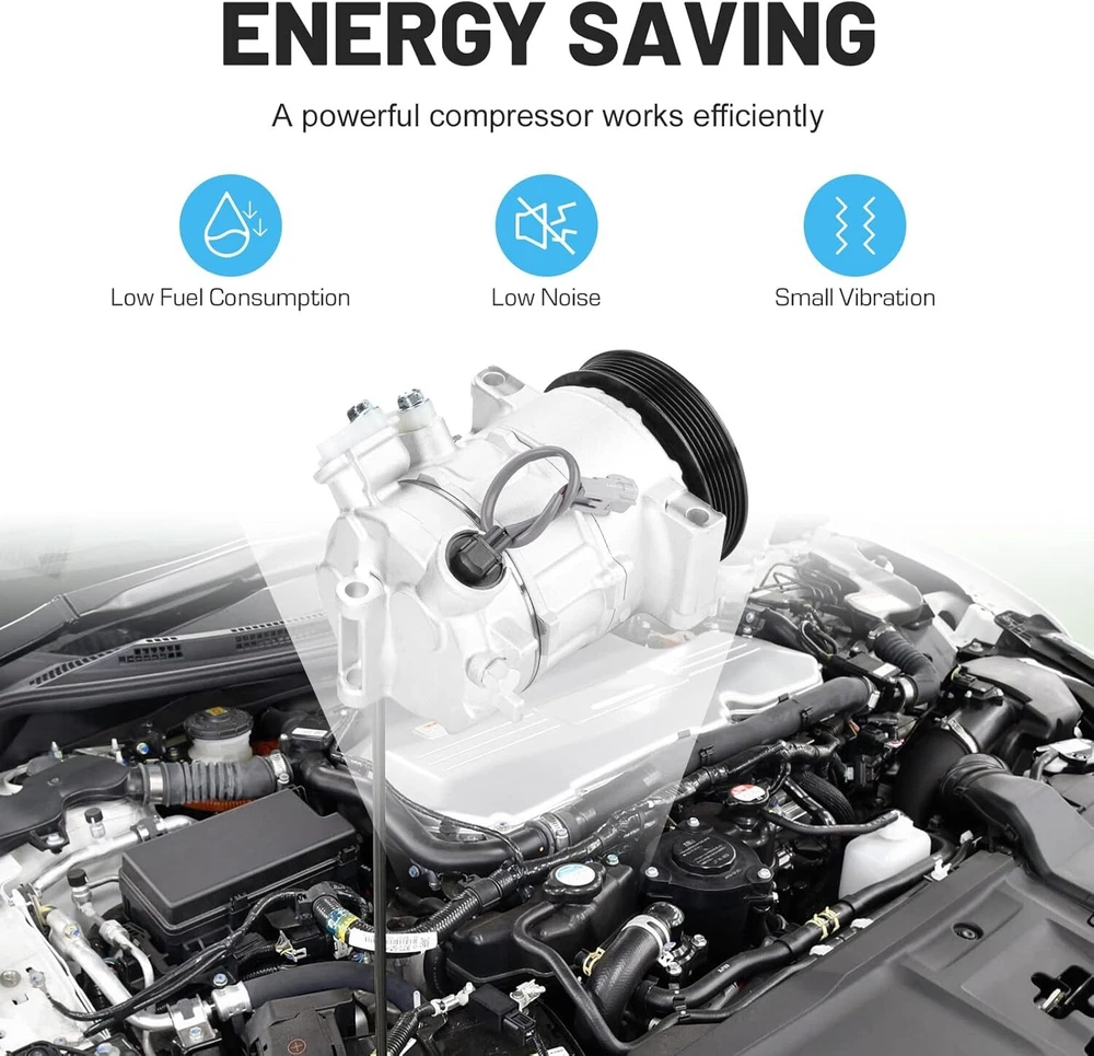 【Vehicle Compatibility】This air conditioner compressor with clutch fits for Dodge Caliber 2009-2012, Jeep Compass 2009-2017, Jeep Patriot 2009-2017 【Replaces Part#】For RL111610AB, 158388, 2022670AM, 140667C, 140667NC, 6512470, 7512470, 55111610AA, 55111610AB, 2022670, C2694R, 157388, 55111610AC, TEM255346, TEM276024 【Rapid Cooling】With the strong compressed pressure produced by this AC compressor, the conditioner system can quickly provide cold air to make you feel relaxed and comfortable during the trip 【Energy Saving】Our AC compressor kit works efficiently under low noise and tiny vibration to provide you a super cool trip. Driving at a stable speed will help reduce fuel consumption 【Durable construction】The compressor is mainly made of high-strength aluminum alloy which ensures reliable Specification& Feature : *Condition: 100% BrandNew and High Quality. *According to the original factory specifications. *Perfect match for the original car. *Stable characteristics, high reliability. *Replace OEM Number: CO30011C,RL111610AB,55111610AA,55111610AB,158388,6512470 55111610AC,RL111610AC,140667C,2022670AM,20-22670-AM 157388,7512470,255346,276024,TEM255346,TEM276024,2022670 *Fitment: Make Model Year Engine Notes Dodge Caliber 2009-2012 All Engine Jeep Compass 2009-2016 All Engine Jeep Compass 2017 All Engine 1st Design, Engine Code: ECN or ED6 or ED3 or EDD Jeep Patriot 2009-2010 All Engine Jeep Patriot 2011 L4 2.0L Engine Code: ECN, VIN: A Jeep Patriot 2011 L4 2.4L Engine Code: ED3, VIN: B Jeep Patriot 2012-2017 All Engine Please Note: *Please make sure the installation site is clean. Or, it will cause operating obstruction, even make the temperature of the compressor very high, and the belt on the clutch may melt. *Because the item is with oil when sent to you, so there is no need to add oil when you use it the first time. But you need to add the refrigerant , please add about 500g, don't need to fill up. There may be noise if the refrigerant is added too much. *No installation instruction included, professional installation is highly recommended. Package Includes: 1 x Air Conditioner Compressor W/ Clutch