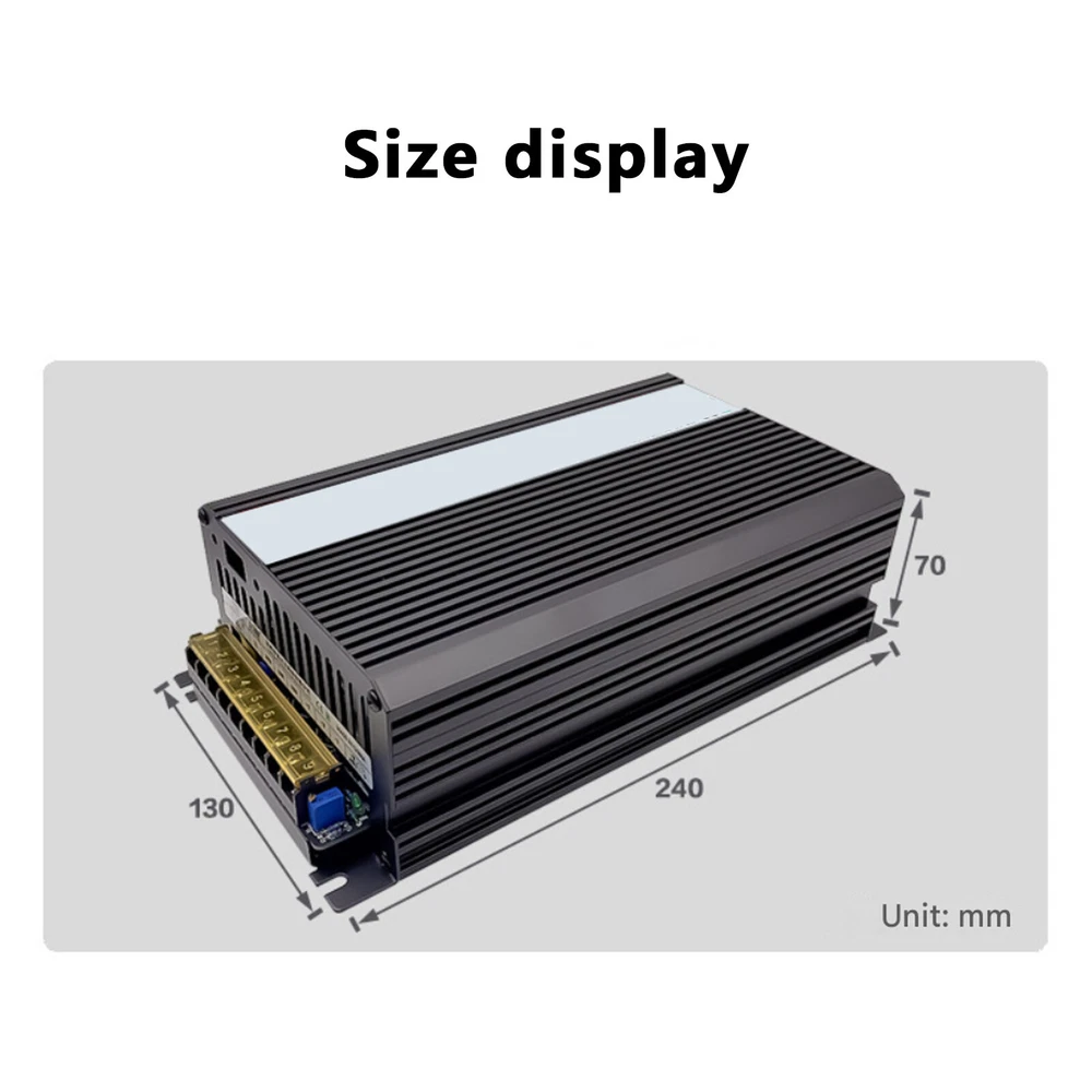 Features: 1. Universal AC input, optional 110v / 220v; 2. Protection function: short circuit, overload, overvoltage, overvoltage; 3. High efficiency, constant voltage and constant current; 4. 100% full load aging test, CE RoHS certification; 5. Suitable for LED lighting, 3D printers, DC motors, industrial machinery. specification: Input voltage: 100-120VAC;200-240VAC ±20% Output voltage: DC 12V/24V/48V Output current: maximum 125A/62.5A/31.25A Rated power: 1500W Drive mode: constant pressure Protection: short circuit, over voltage, over current, over heat Shell material: aluminum box Cooling: forced wind Weight: 1850 grams Size: 245 * 130 * 70mm note: 1. IP20 rate, only used indoors; 2. This power supply is "not done" with installation instructions, wiring cables, on/off switches or screws. 3. In order to extend the power of the power supply, please select a model with a power 20% higher than the equipment. filler: 1 power supply Please Note: Communication is the best way to solve the problem.Your satisfaction is our top priority. We appreciate your positive feedback! We have always been committed to providing the best service and reliable products to every customer. However, accidents may occur at times, and we understand your concerns and setbacks. Please contact us to resolve the issue before leaving negative feedback. We will reply to you as soon as possible. If there is no response within 24 hours, please check the email in your email. Our goal is to provide first-class customer service, so we usually do our best to solve any problems! (Note: Weekend Information Will Be Replied on the Next Working Day)