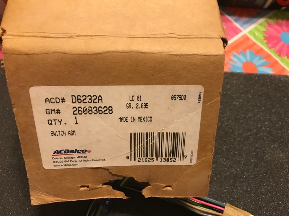 You are buying a AC Delco D6232A GM 26083628 Turn, Wiper, Dimmer, Hazard Arm Assembly Switch. This Switch is New in Box, see Pictures for details. We Prefer PayPal and please submit your payment within 24 hours of auction end. We usually ship with USPS 1st Class or Priority mail as standard shipping, and will ship with USPS Express Mail if you choose to pay for that. We try and ship by next business day, typically the same day, after payment is received. We will ship to any country outside of the 50 United States IF YOU PAY FOR THE SHIPPING. Feel free to email us with any concerns or questions through the "Ask Seller A Question" option available in this listing. Thank you for considering shopping with us.