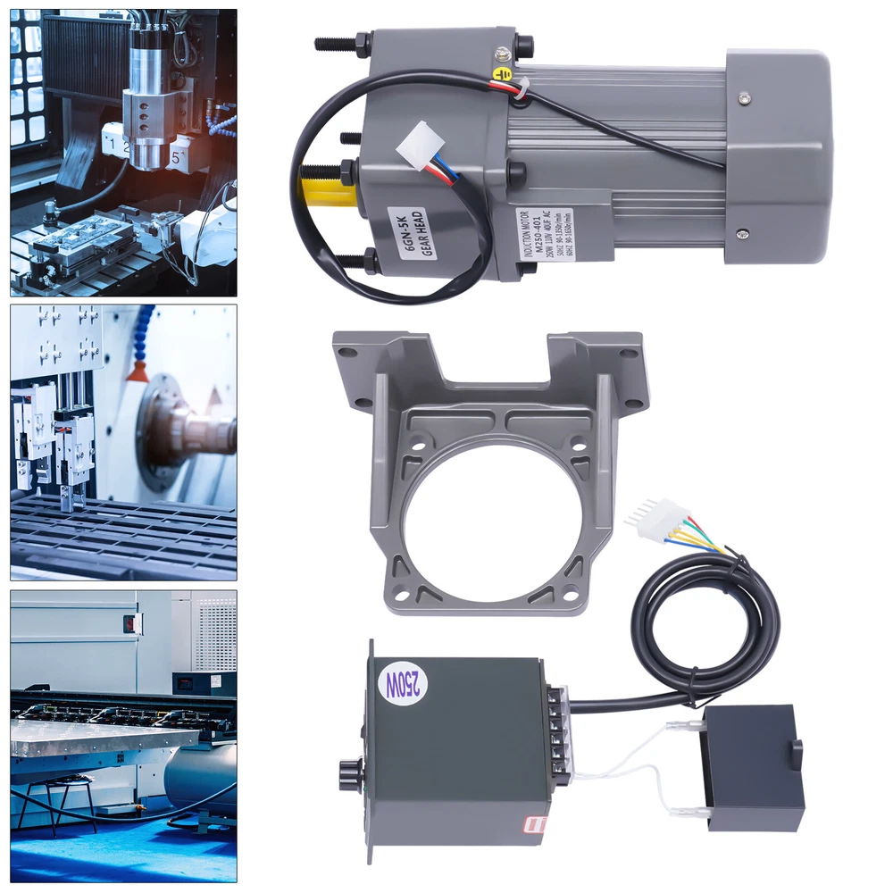 Package Included 1 x Motor 1 x Reduction Gearbox 1 x Governor 1 x Bracket Packing Size: 33*26*13cm/12.99*10.23*5.11in Gross Weight: 7.9kg/17.41lbs Net Weight: 7.3kg/16.09lbs AC Gear Motor Electric Motor Variable Speed Controller 0-270rpm 110V 250W NEW 110V 250W AC Gear Motor Electric Motor Variable Speed Controller 0-270rpm Description The product includes a complete set of accessories. In addition to the motor, it is also equipped with a bracket, a reducer, and a speed regulator for your convenience. This gear adjustable motor is primarily used to reduce the speed of a series of gears, thereby producing more power torque to improve working efficiency. Key Features Strong and Durable: The housing of this product is made of high-quality aluminum alloy, which is strong, durable, wear-resistant, anti-shock, high-temperature resistant, and can protect the internal parts well. Stable Operation: Both ends of the speed control motor rotor are fitted with ball bearings, which allow it to operate with low friction, reduce energy consumption and generate lower temperatures to ensure stable operation. High Efficiency: The stator and rotor are made of pure copper coils with good electrical conductivity, allowing for a constant high and stable power output. Adopting high-precision steel gears effectively increases the torque of the motor, which greatly enhances its working efficiency. Adjustable Speed: You can adjust the speed from 0% to 100%(0-270rpm) through the stepless speed knob on the governor according to the different situations to achieve the desired effect. Easy to Install: Since the motor and gearbox are already installed, you only need to plug the governor cable into the jack of the motor cable to quickly connect the motor and governor, which saves both time and labor. Forward and Reverse Rotatable: The governor is initially specified for forward rotation, but you can connect the wires on the CCW to the CW and then it can be converted to reverse rotation to suit your different needs. Good Heat Dissipation Performance: The motor has a built-in fan heatsink and cooling holes at the rear of the motor, providing good ventilation and heat dissipation to ensure stable performance and long service life. Low Noise: The speed control motor adopts high precision and high-speed bearings inside to bring you lower noise and create a quieter environment for you. Details Indicator Light: The indicator light on the governor will be on when the power is on so that you can better understand the use status of the product. Motor Bracket: The bracket comes with triangular reinforced side plates for a stable structure, making the motor more firmly fixed without tilting or collapsing. Practical Governor: The governor is equipped with a threaded speed regulating knob, a speed scale panel, and a connector wiring description on the side, which is simple and easy to operate. It is also equipped with a one-button power switch, making it safer to use. Application This product is widely used in industrial assembly lines, intelligent equipment, animal husbandry machinery, printing machinery, textile machinery, instrumentation, food machinery, power transmission and transformation equipment, road gate machines, medical equipment, logistics equipment, security check facilities, financial equipment, new energy, industrial robots, and other industries. Package Included 1 x Motor 1 x Reduction Gearbox 1 x Governor 1 x Bracket Packing Size: 33*26*13cm/12.99*10.23*5.11in Gross Weight: 7.9kg/17.41lbs Net Weight: 7.3kg/16.09lbs Notes 1.When the motor is working, it is normal for the temperature to rise to about 65℃/149℉. Please rest assured that it will not affect your use. 2.Please do not knock the motor and the body of the governor. 3.Please disconnect the power supply before changing the wire. 4.Please allow the slight color difference caused by the shooting light and 1-3cm error due to manual measurement, and make sure you do not mind before you order Payment Delivery details Terms of sales About us Contact us Payment We accept ebay payment 。 Fees such as import duties, taxes are not included in the item price or shipping costs. These charges are the buyer's responsibility. Delivery details Shipping: 2-9 working days to: USA Terms of sales We maintain high standards of excellence and strive for hundred percent customer satisfaction. Feedback is very important to us. We hope that you contact us immediately before you give neutral or negative feedback, so that we can address your concerns. It is impossible to address issues if we do not know about them! About us Your satis faction is our ultimate goal. We work hard to earn your trust and future business. Our certified technicians have tested each item before shipping. The unit comes with 1 year limited warranty on all manufacturing defects. a) If you receive a defective item, you may return it or ask for a discount. Please contact us within 14 days after you receive the package. b) What you returned must be intact and in its original packaging as re? u. Customer is responsible for shipping costs of the returned item. c) We will cover the cost of shipping back t with the shipping rate indicated in the registration page. We will send you a new unit or refund the full payment you paid. Thank you. Contact us Business Hour Business Hour: Monday To Friday: 8:30 AM to 5:00 PM (Beijing China time) Due to time zones, our reply to your questions may not be immediately. But within above working time, we will reply your email within 24 hours. If it's non-workdays, please kindly be patient and wait till Monday. Please contact us with ebay message. Please feel free to contact us if you have any questions. Monday To Friday: 8:30 AM to 5:00 PM (Beijing China time) Due to time zones, our reply to your questions may not be immediately. But within above working time, we will reply your email within 24 hours. If it's non-workdays, please kindly be patient and wait till Monday. Please conta
