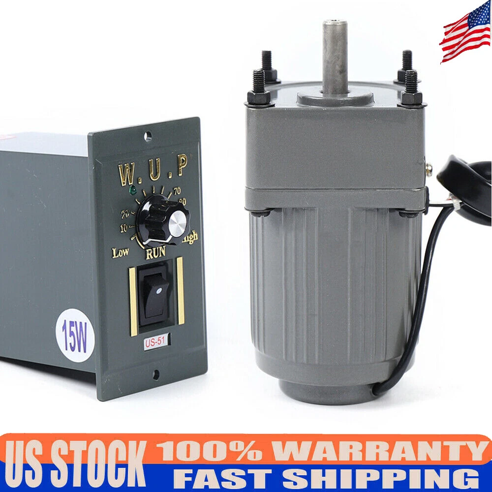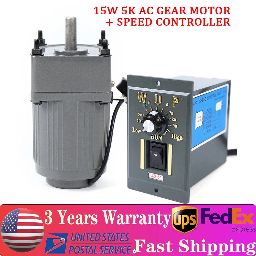 AC Gear Motor Electric Motor Variable Speed Controller 1:10 125RPM AC 110V 15W Description 15W 110V Gear Motor Electric Variable Speed Controller 1:10 125RPM Single-phase CE-WMTZXL-755-US+CE-WMTZXL-756-US Note:Fans are only available for products over 60W, and this 15W product does not have a fan. 15W AC110V gear motor electric motor variable speed controller 1:10 125RPM Specification: Name: geared motor Rated voltage: AC110 V Rated speed: 125 RPM Reduction ratio: 1:10 Power Phase: single-phase Gearbox Reduction ratio: 1/3/5/6/7.5/10/12.5/15/20/25/30/40/50/75/100/150/180 15W geared motor 3RK15GN-C 70MM * 70MM * 134MM, Axis by 10MM, Axis length 30MM 15W gear motor Output speed: 450~0RPM, 270~0RPM, 180-0RPM, 135~0RPM, 108~0RPM, 90~0RPM, 75~0RPM, 67~0RPM, 54~0RPM, 45~0RPM, 27~0RPM, 18-0RPM, 13.5-0RPM, 7-0RPM, fast 450 RPM, slow turn 0RPM, the faster speed, the smaller strength! Features: Flexible installation Efficient works Torque large Smooth operation Long working life Note: Under different deceleration ratio, the output shaft speed is different. The output shaft speed is equal to the motor speed of 1500 rpm divided by the deceleration ratio. Packages: 1 * Gear Motor 1 * Speed Governor 1 * set accessories Note:Based on the industrial standard, to meet different needs of customers, our motor does not include the power cord, you need to purchase the power cord to connect. Payment Delivery details Terms of sales About us Contact us Payment We accept ebay payment 。 Fees such as import duties, taxes are not included in the item price or shipping costs. These charges are the buyer's responsibility. Delivery details Shipping: 2-9 working days to: USA Terms of sales We maintain high standards of excellence and strive for hundred percent customer satisfaction. Feedback is very important to us. We hope that you contact us immediately before you give neutral or negative feedback, so that we can address your concerns. It is impossible to address issues if we do not know about them! About us Your satis faction is our ultimate goal. We work hard to earn your trust and future business. Our certified technicians have tested each item before shipping. The unit comes with 1 year limited warranty on all manufacturing defects. a) If you receive a defective item, you may return it or ask for a discount. Please contact us within 14 days after you receive the package. b) What you returned must be intact and in its original packaging as re? u. Customer is responsible for shipping costs of the returned item. c) We will cover the cost of shipping back t with the shipping rate indicated in the registration page. We will send you a new unit or refund the full payment you paid. Thank you. Contact us Business Hour Business Hour: Monday To Friday: 8:30 AM to 5:00 PM (Beijing China time) Due to time zones, our reply to your questions may not be immediately. But within above working time, we will reply your email within 24 hours. If it's non-workdays, please kindly be patient and wait till Monday. Please contact us with ebay message. Please feel free to contact us if you have any questions. Monday To Friday: 8:30 AM to 5:00 PM (Beijing China time) Due to time zones, our reply to your questions may not be immediately. But within above working time, we will reply your email within 24 hours. If it's non-workdays, please kindly be patient and wait till Monday. Please contact us with ebay message. Please feel free to contact us if you have any questions. *Feature* good quality, durable * Feature * Creative Design,Durable Material,Beautiful Appearance Feature 1 Easy installation,Convenient Use,Easy Operation Reversible/Non-Reversible Reversible Brand Unbranded MPN Does Not Apply Name geared motor Rated voltage AC110 V Rated speed 125 RPM Reduction ratio 1:10 Power Phase single-phase Current Type AC AC Phase Single Phase UPC does not apply