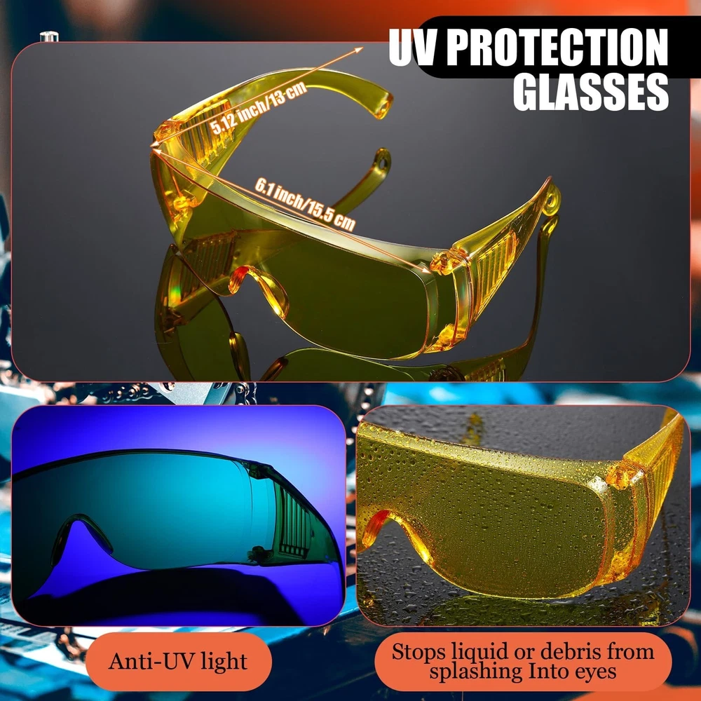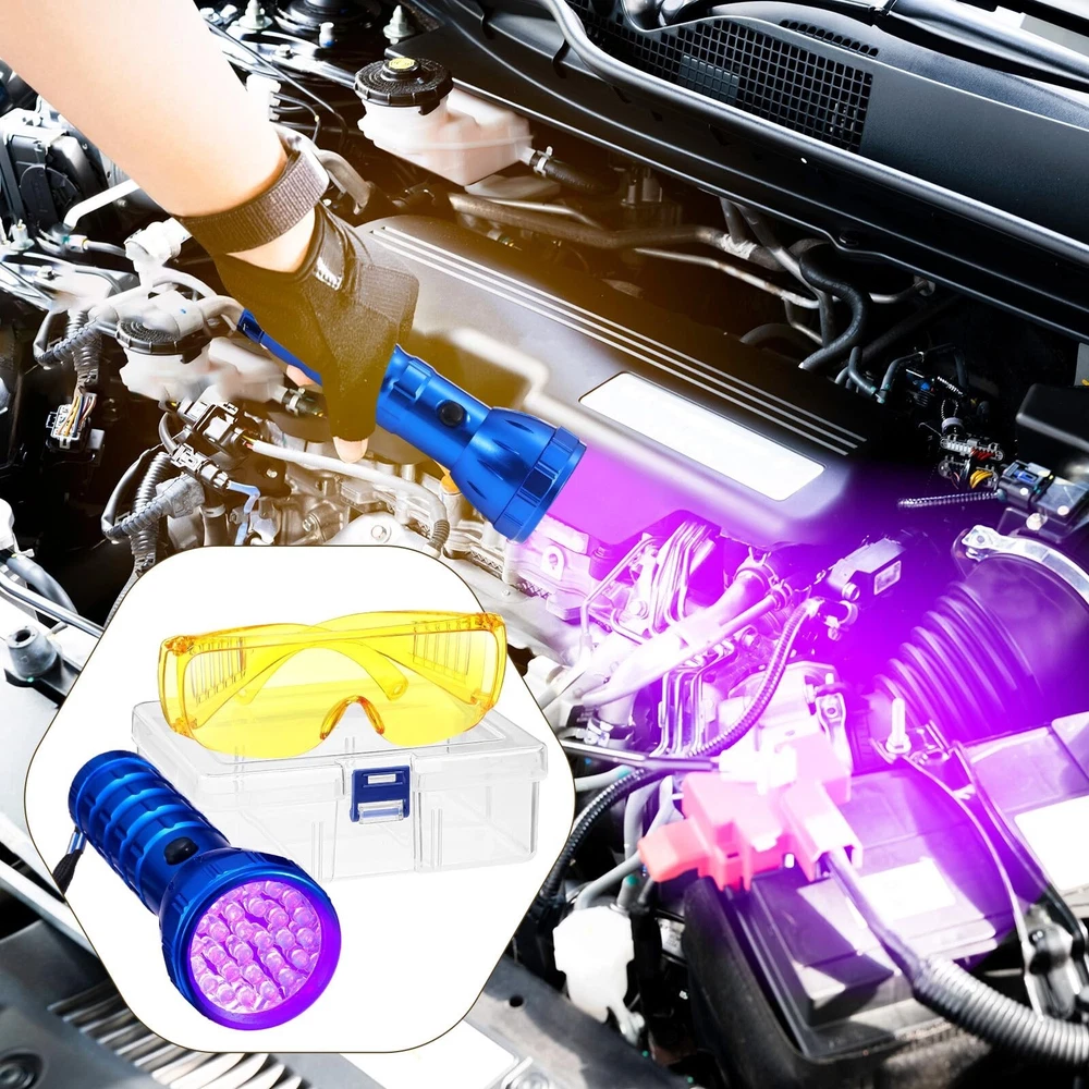 AC Leak Detector Kit AC UV Oil Dye Leak Detection includes LED Flashlight and UV Protective Glasses with Box for Car Refrigerant Leak Detector Tool Product Details Manufacturer: Tellegloww Brand: Tellegloww Item Weight: 9.6 ounces Package Dimensions: 7.99 x 5.12 x 2.44 inches Country of Origin: China Manufacturer Part Number: QMF-Tellegloww-0513 Date First Available: May 6, 2024 AC Leak Detector Tool Kit: includes 1 aluminum alloy flashlight, 1 pair of protective glasses made of plastic and a sturdy box for safe storage; This comprehensive kit ensures you are fully equipped to detect and handle AC leaks Functional and Delicate: our AC leak detector kit showcases a blend of practicality and style; The kit comes with a flashlight and UV protector glasses; It's not just effective and efficient, but also delicate and refined in its appearance, making it a stylish addition to your toolkit Quality Materials: our air conditioning tools equipment kit is made with quality and durable materials; The flashlight is crafted from a strong aluminum alloy, ensuring long reliability and effective performance; The protective glasses included in the kit are designed from plastic, ensuring robustness and comfort during use, coming with a plastic box, easy to carry Practical and Useful: the AC leak detector kit stands out with its features; The kit includes a powerful 28 LED flashlight equipped with a convex lens capable of strong light emission; The light can reach a distance of about 300 meters with up to 20 hours of lighting time Assorted Occasions: the AC UV dye detection kit is not only suitable for scorpions, stamps, but also applicable for cat urine, banknotes, refrigerant leakage of cars and air conditioners, ideal UV pollution and leakage detection Features: Our air conditioner stop leak detector kit is crafted to provide functionality. Made from quality materials, the kit contains a flashlight built from aluminum alloy, known for its strength and durability, plus a pair of protectively designed plastic glasses. The flashlight emits a strong light from a distance of approximately 300 meters, ensuring that you can easily detect leaks even in the most obscured corners. The yellow plastic glasses included are designed to not only protect your eyes but to also strengthen the UV light. The package comes complete with 1 flashlight, 1 protective glasses, and a box for secure storage. This practical and effective kit is suitable for your AC leakage issues. Specifications: Material: Flashlight: aluminum alloy Glasses: plastic Color: Glasses: yellow Package includes: 1 x Flashlight 1 x Protective glasses 1 x Box Notes: Manual measurement, please allow slight errors on size. The color may exist a slight difference due to different screen displays.