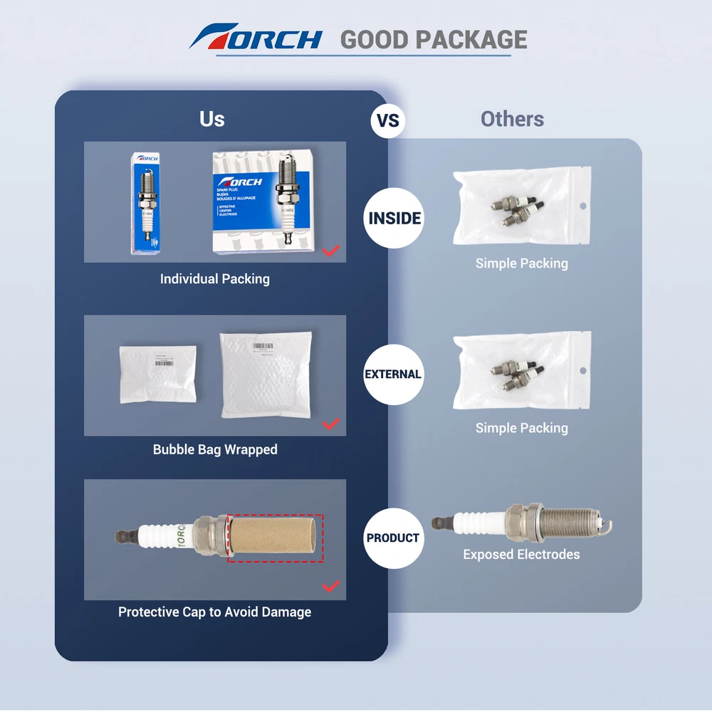 Store Categories Store Categories Spark Plug EFFECTIVE IRIDIUM Double lridium Platinum Double Platinum Iridium Platinum Ignition Coil Ignition Coil Oxygen Sensor Oil Filter Automobile Other Parts Other TORCH SPARK PLUG HISTORY Product Description Size: Length of thread: 12.7mm/ 0.5 Inch Thread Size:M10x1mm Hexagon Diameter:16mm/ 0.62 Inch Seat: Flat Seat Product Model: AC7R Weight: 0.026kg Product Information Product Information Matching Models Suitable Brand: Replacement for NGK 3066 CMR7H Detailed D escription 1. Spark plugs are an important part of the ignition system of gasoline or gas engines, and are widely used in many fields such as automobiles, motorcycles, aircraft, garden tools, yachts and industrial engines. specifically designed to increase power, reduce fuel consumption and improve hydrocarbon emissions. 2. L onger Service Life, Fast starts , Reduce Emissions ,Improve Fuel Efficiency, Stable Performance. 3. We have a center electrode cases, prevent the center electrode contamination and damage. And we also strengthen the packaging bags and boxes, to avoid damage in transit Warm Reminder 1.Please check for correct specifications and measurements for your application! 2.You can contact us if you do not confirm the model. 3. When replacing the spark plug, turn off the engine in advance to ensure that the engine is in a cooling state. 4. Before remove the spark plug, should be to clean the surface of the cylinder around the spark plug. 5. The spark plug thread does not need to be refueled Packing list: 1 x TORCH AC7R Spark Plug Copyright © 2021 Dianxiaomi