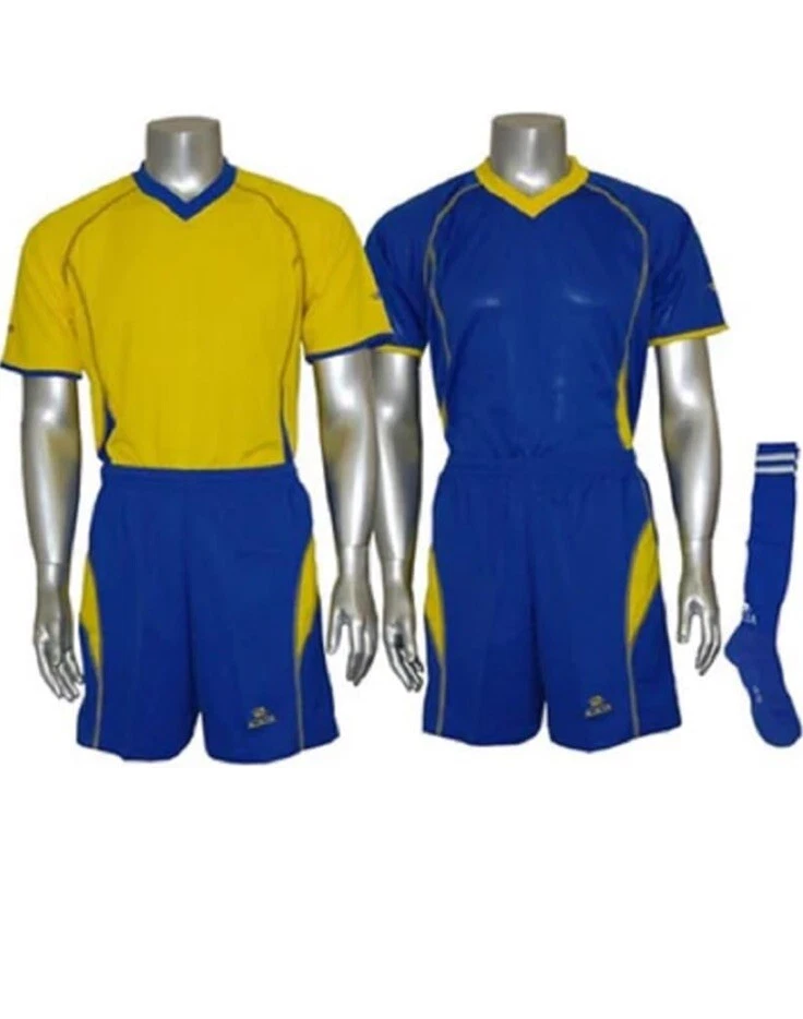 Extreme 74-Piece Home & Away Team Uniform Set : The ultimate team uniform kit that includes 34 pro-quality V-Neck jerseys (17 home and 17 away) Features & details Extreme 74-Piece Home & Away Team Uniform Set : The ultimate team uniform kit that includes 34 pro-quality V-Neck jerseys (17 home and 17 away 17 pairs of matching shorts, 18 pairs of socks, 1 goalkeeper jersey, 1 goalkeeper shorts, 1 pair of goalkeeper gloves and 2 pro quality size 5 soccer balls. made from 100% polyester jacquard wicking fabric