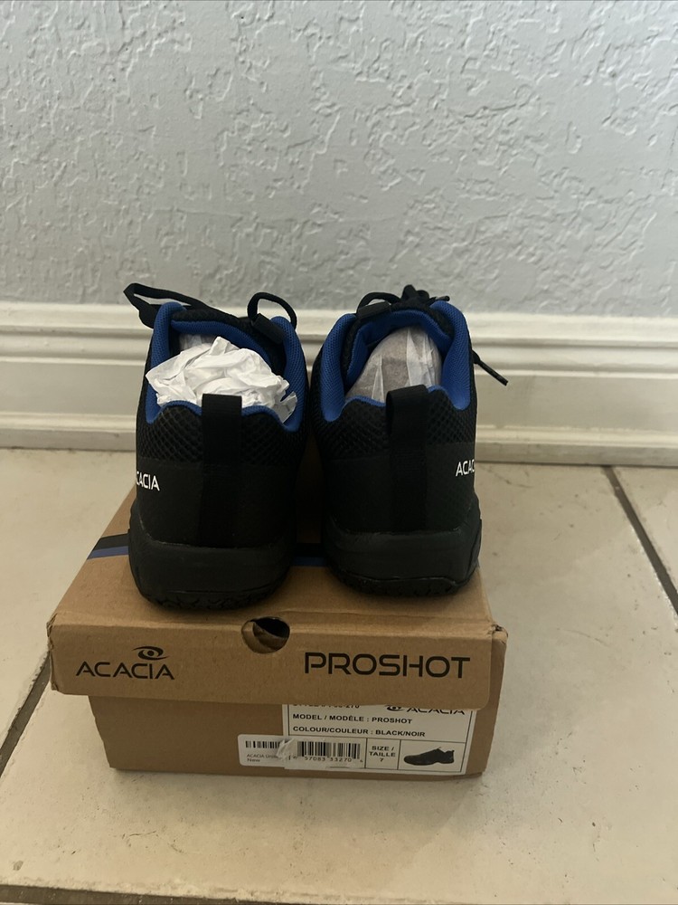 Introducing the ACACIA Unisex-Adult Pickleball Shoes in size 7. These shoes are perfect for all your pickleball needs. They come in a sleek black color and are designed for both men and women. With their comfortable fit and durable construction, these shoes will help you perform at your best on the court. They are made by the trusted brand ACACIA, known for their quality sportswear. These shoes are ideal for anyone looking for a reliable and stylish pair of pickleball shoes.