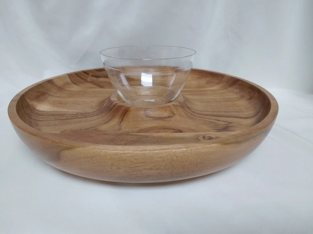ACACIA WOOD LAZY SUSAN CHIP/VEGGIE AND DIP BOWL