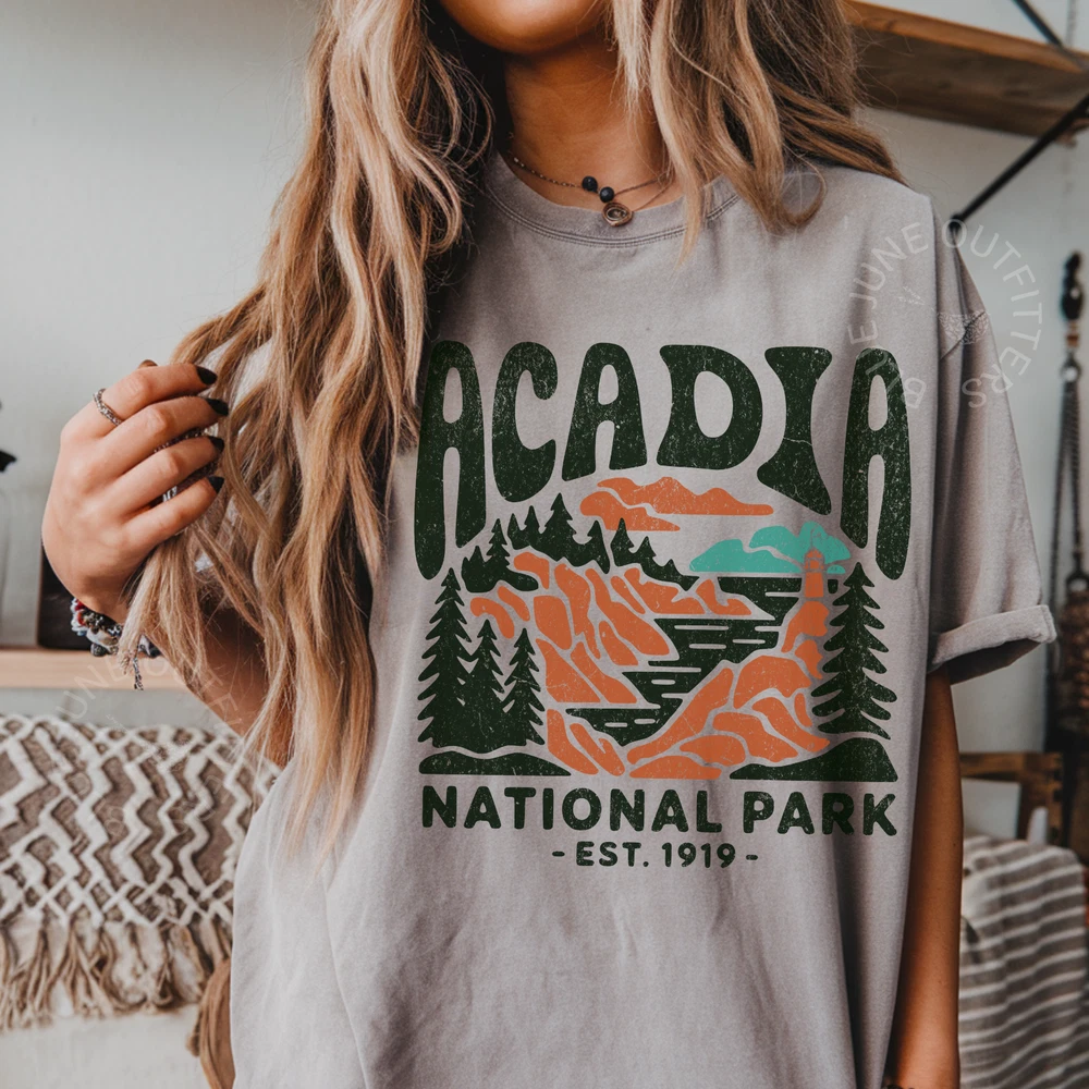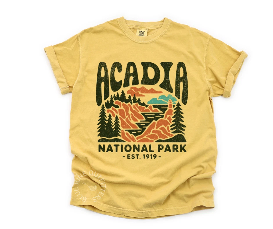 Explore the rugged beauty of Maine’s iconic coast in our Acadia National Park tee — designed for lovers of pine forests, ocean views, and sunrises on the summit. With bold, vintage-style artwork and rich earthy tones, this graphic tee celebrates one of the most breathtaking parks on the East Coast. Printed on garment-dyed Comfort Colors 1717 tees, this shirt is soft, broken-in, and ready for your next adventure—whether you're hiking Cadillac Mountain or just dreaming of salty air and coastal trails. Available Colors: 🌫️ Grey 🌊 Bay 🍯 Mustard 🍓 Berry ⚪ White Product Details: Comfort Colors 1717 unisex tee 100% ring-spun cotton Garment-dyed & soft-washed Relaxed fit Sizes SM–4XL Screen printed in the USA Machine washable Great For: National park lovers & collectors Outdoor adventures, hiking, road trips Travel gifts for nature lovers Coastal explorer aesthetic Retro outdoor fashion