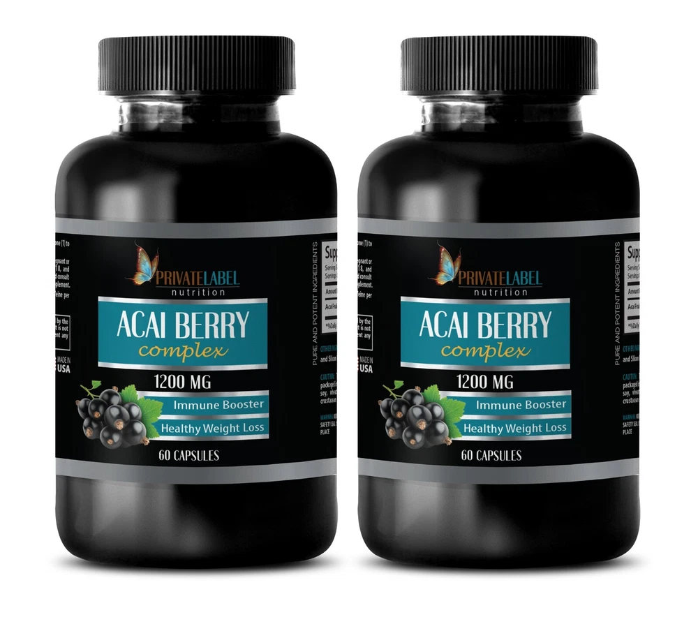 ACAI BERRY EXTRACT - Comprehensive Holistic Wellness Boost - 2B 120 Caps Acai Berry Extract 1200mg Powerful Antioxidant Healthy Metabolism Healthy Weight Loss Made In USA 2 Bottles 120 Capsules Introducing our Acai Berry (4:1 extract) 600 mg supplement – a potent health ally hailing from the Amazon rainforest. Delve into the science-backed benefits of this remarkable fruit, meticulously extracted to bring you a powerhouse of nutrients that support your overall well-being. Sustainable Sourcing: Our commitment extends beyond your health to the preservation of the Amazon ecosystem. We employ ethical harvesting practices to ensure a minimal ecological footprint, prioritizing both your health and environmental sustainability. Acai Berry Origins: Native to the Amazon, the Acai Berry has gained recognition for its nutritional density and potential health advantages. Our supplement encapsulates the essence of this fruit, sourced responsibly from the heart of the rainforest, adhering to sustainable harvesting practices. Health Benefits Explored: Antioxidant Armor: Acai Berry is laden with antioxidants, such as anthocyanins and polyphenols, known for their ability to combat oxidative stress. This antioxidant protection contributes to cellular health and may mitigate the effects of free radicals. Immune Boost: Packed with vitamins, minerals, and immune-supporting compounds, Acai Berry enhances your body's defense mechanisms. Strengthening your immune system, it aids in protecting against external threats. Natural Energy Boost: Acai Berry serves as a natural energy source, providing a sustainable boost for physical and mental vitality. Whether for your workout routine or daily fatigue, this supplement may offer the energy lift you need. Cardiovascular Support: Rich in anthocyanins and plant sterols, Acai Berry may contribute to cardiovascular health by helping maintain optimal cholesterol levels and supporting healthy blood circulation. Digestive Well-Being: With its high fiber content, Acai Berry supports digestive health by promoting regular bowel movements and fostering a balanced gut microbiome. Improved nutrient absorption contributes to comprehensive digestive well-being. Immerse yourself in the health benefits of the Amazon with our Acai Berry (4:1 extract) 600 mg supplement. Designed with a focus on quality and sustainability, this product embodies a science-backed approach to holistic health. Elevate your well-being with the potent advantages of Acai Berry, meticulously extracted to support your journey toward a healthier lifestyle. Supplement Facts: Acai Fruit (4:1 concentrate) 1200mg OTHER INGREDIENTS: Gelatin, Magnesium Stearate and Silicon Dioxide. Contains: No sugar, salt, dairy, yeast, wheat, gluten, corn, soy, preservatives, arti cial colors of ovors. SUGGESTED USE : As a dietary supplement, adults take one (1) tablet, one (1) to three (3) times daily between meals, or as directed by a health care professional. Serving Size: 2 Capsules, Serving Per Container: 30