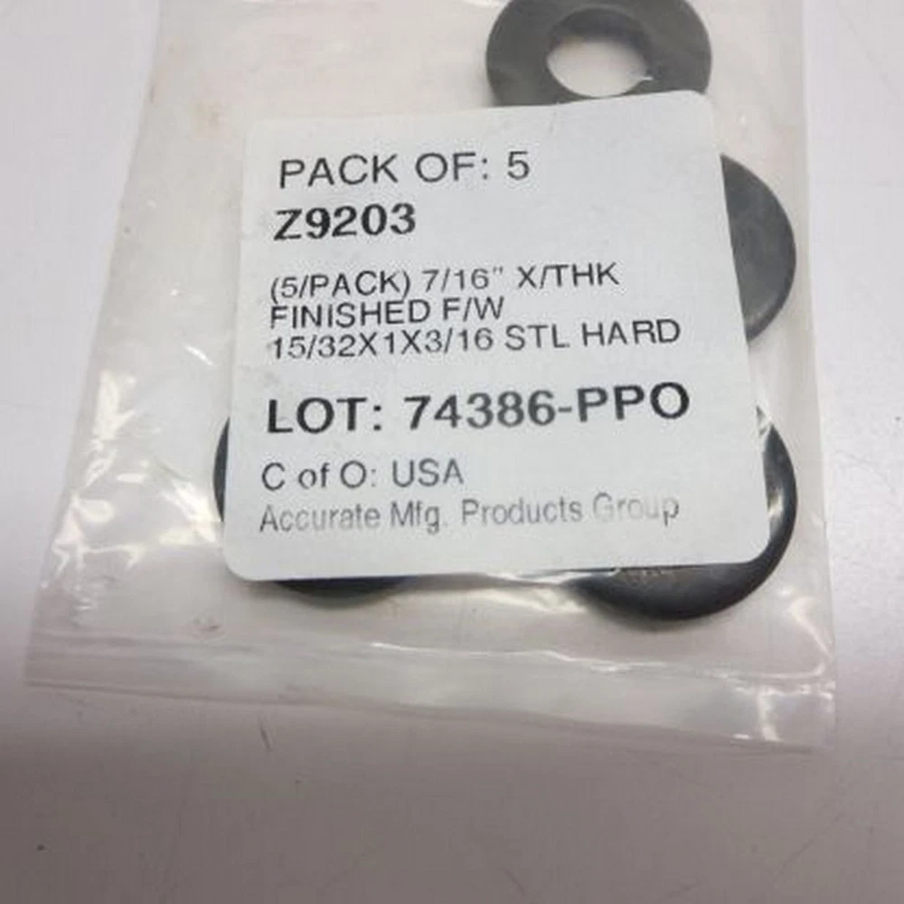 100% Original High Quality Fast Shipping ACCURATE MFG Z9203 Black-Oxide Steel Oversized Washer for 7/16" Screw Size, 0.469" ID, 1" OD, 0.168"- 0.193" Thickness (LOT OF 9 PACKS) ACCURATE MFG Z9203 Black-Oxide Steel Oversized Washer for 7/16" Screw Size, 0.469" ID, 1" OD, 0.168"- 0.193" Thickness (LOT OF 9 PACKS) (199252) "Quality products at a great price with outstanding customer service" Payment Shipping We accept payment by any of the following methods: PayPal "Buyer is responsible for any duties, taxes or VAT resulting from export of this item purchased and we will not provide out Tax ID number if requested". We offer FAST shipping on all orders! Your order will normally be shipped the same day if ordered by 2:00 p.m. EST. and receipt of payment or, within 1 working day of receipt of payment if ordered after 2:00 p.m. EST. (Monday-Friday). You should expect to receive your item in two to three days (International shipments will take longer to receive. In the very unlikely event that your item is lost or damaged during shipment, then WE are responsible and will issue either a full refund or replacement if stock is available. Returns Return period for test and electrical equipment is 90 days from date received all other items have a 30-day return period. If you receive a delivery and the item is damaged please notify the carrier immediately. If the item received is damaged the buyer has three (3) days to notify us and to open a return request/claim for damaged goods. We insure all items over $100 so if something is received damaged please keep all packaging material with the unit to assist us in filing a claim with the carrier. Please contact us in the unlikely event that you have any problems with an item purchased. 100% Original High Quality Fast Shipping ACCURATE MFG Z9203 Black-Oxide Steel Oversized Washer for 7/16" Screw Size, 0.469" ID, 1" OD, 0.168"- 0.193" Thickness (LOT OF 9 PACKS) (199252) High Quality Fast Shipping 100% Original ACCURATE MFG Z9203 Black-Oxide Steel Oversized Washer for 7/16" Screw Size, 0.469" ID, 1" OD, 0.168"- 0.193" Thickness (LOT OF 9 PACKS) ACCURATE MFG Z9203 Black-Oxide Steel Oversized Washer for 7/16" Screw Size, 0.469" ID, 1" OD, 0.168"- 0.193" Thickness (LOT OF 9 PACKS) (199252) We accept payment by any of the following methods: PayPal "Buyer is responsible for any duties, taxes or VAT resulting from export of this item purchased and we will not provide out Tax ID number if requested". Payment Shipping We offer FAST shipping on all orders! Your order will normally be shipped the same day if ordered by 2:00 p.m. EST. and receipt of payment or, within 1 working day of receipt of payment if ordered after 2:00 p.m. EST. (Monday-Friday). You should expect to receive your item in two to three days (International shipments will take longer to receive. In the very unlikely event that your item is lost or damaged during shipment, then WE are responsible and will issue either a full refund or replacement if stock is available. "Quality products at a great price with outstanding customer service" Returns Return period for test and electrical equipment is 90 days from date received all other items have a 30-day return period. If you receive a delivery and the item is damaged please notify the carrier immediately. If the item received is damaged the buyer has three (3) days to notify us and to open a return request/claim for damaged goods. We insure all items over $100 so if something is received damaged please keep all packaging material with the unit to assist us in filing a claim with the carrier. Please contact us in the unlikely event that you have any problems with an item purchased. High Quality 100% Original Fast Shipping ACCURATE MFG Z9203 Black-Oxide Steel Oversized Washer for 7/16" Screw Size, 0.469" ID, 1" OD, 0.168"- 0.193" Thickness (LOT OF 9 PACKS) (199252)