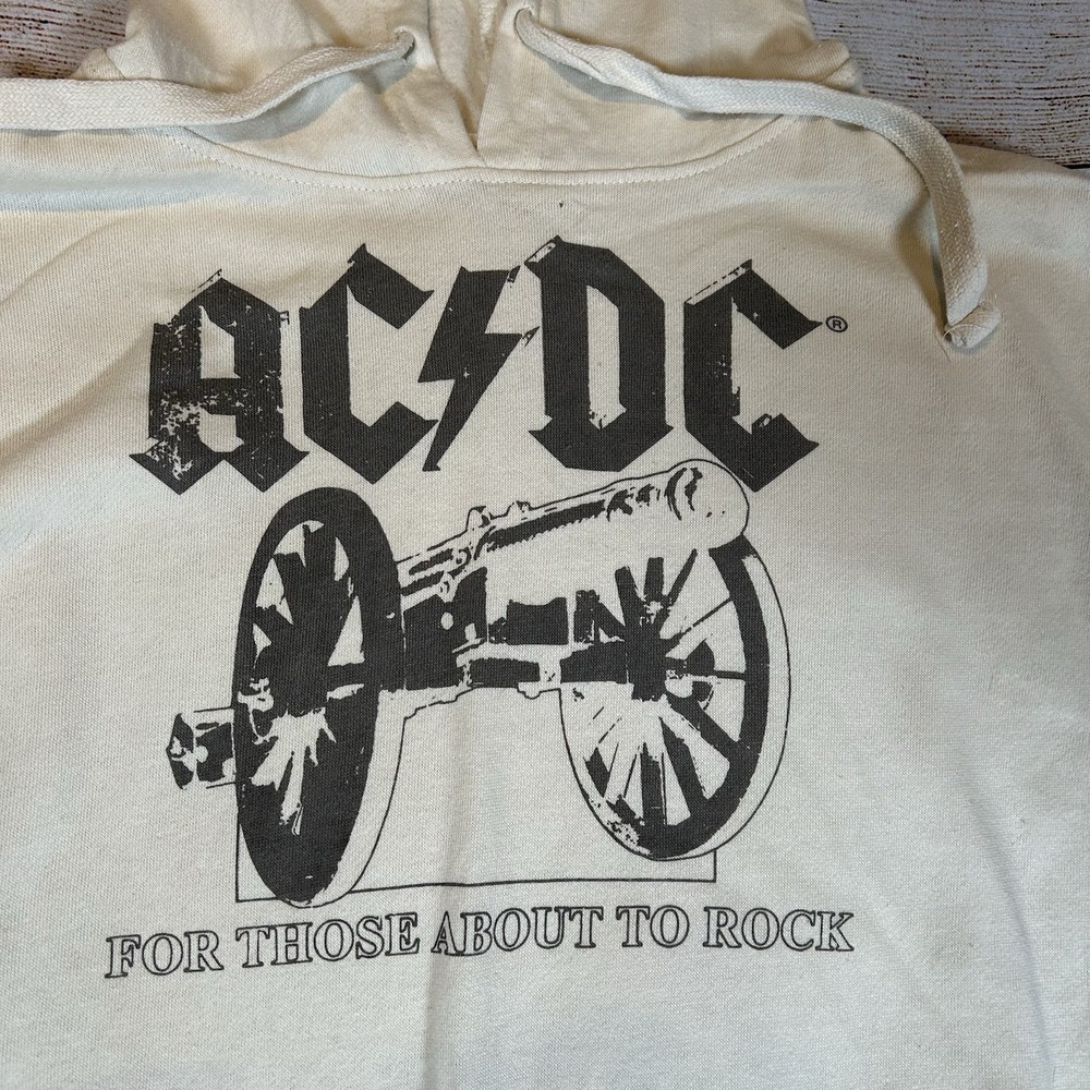 AC/DC Sweatshirt – Size Large – Unisex Cream Band Sweater – "For Those About to Rock" Cannon Graphic – Lightweight Condition: Great overall condition – No noticeable issues 📸 Please see all photos for full details and condition Features: Size: Large – suitable for men or women (unisex fit) Color: Cream / Off-White Front Graphic: "For Those About to Rock (We Salute You)" with iconic cannon design Style: Pullover crewneck sweatshirt Material: Lightweight cotton/poly blend – soft and breathable Ideal for festivals, concerts, casual wear, or collectors of classic rock merch Show your love for legendary rock band AC/DC with this stylish and comfortable sweatshirt. Featuring the iconic cannon graphic inspired by their 1981 anthem, it’s a must-have for fans of vintage rock, 80s music, and festival fashion. 🎸 Perfect for layering or wearing on its own – classic band merch look with a modern, relaxed fit. 🚚 Fast shipping – grab this piece of rock history today!