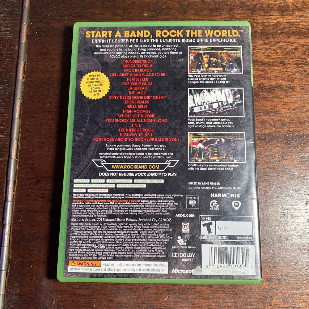 Immerse yourself in the world of action and adventure with AC/DC Live: Rock Band Track Pack for the Microsoft Xbox 360. This complete CIB (Complete in Box) package includes the game, track pack, and original packaging. Jam out to your favorite tunes with the T-Teen rated game, featuring a vast selection of songs and the ability to play as a full rock band. With a region code of NTSC-U/C (US/Canada) and released in 2008, this game offers a thrilling gaming experience for any action and adventure enthusiast. Published by MTV Games, the game is perfect for fans of the AC/DC franchise. Get ready to hit all the right notes and become a rock star with AC/DC Live: Rock Band Track Pack.