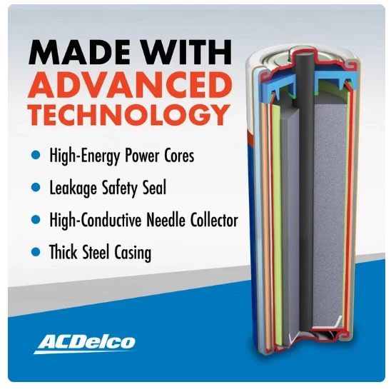 ACDelco AA and AAA Super Alkaline Batteries are equipped with advanced technology you can count on. ACDelco alkaline batteries perform better than the competition in high-drain and super high-drain devices, and they provide consistent discharge performance. ACDelco alkaline batteries are designed for long shelf-life with stainless steel pre-coating that prevents leakage and advanced ingredient formulation that helps maintain power over time. This set includes 24 AA batteries and 24 AAA batteries. AA and AAA batteries are great for a variety of household devices, including clocks, remote controls, and toys. The 1.5-volt batteries contain no mercury or cadmium, making them a smart choice for your family and for the environment. A trusted national brand, ACDelco offers a wide variety of batteries you can count on, including alkaline batteries, lithium coin cell batteries, rechargeable batteries, and car batteries. 48 Batteries: 24 AA batteries and 24 AAA batteries in recloseable storage pack High Performance: Performs better than the competition in high-drain and super high-drain devices 10-Year Shelf Life: Holds power and will not vent or leak when stored in a cool, dry place No Mercury: Contains no mercury or cadmium; safe for the home and better for the environment Everyday Electronics: ACDelco alkaline batteries area a household essential for all your electronic devices, toys, remote controls, gaming devices, flashlights and more On Feb 25, 2025 at 00:58:21 PST, seller added the following information: