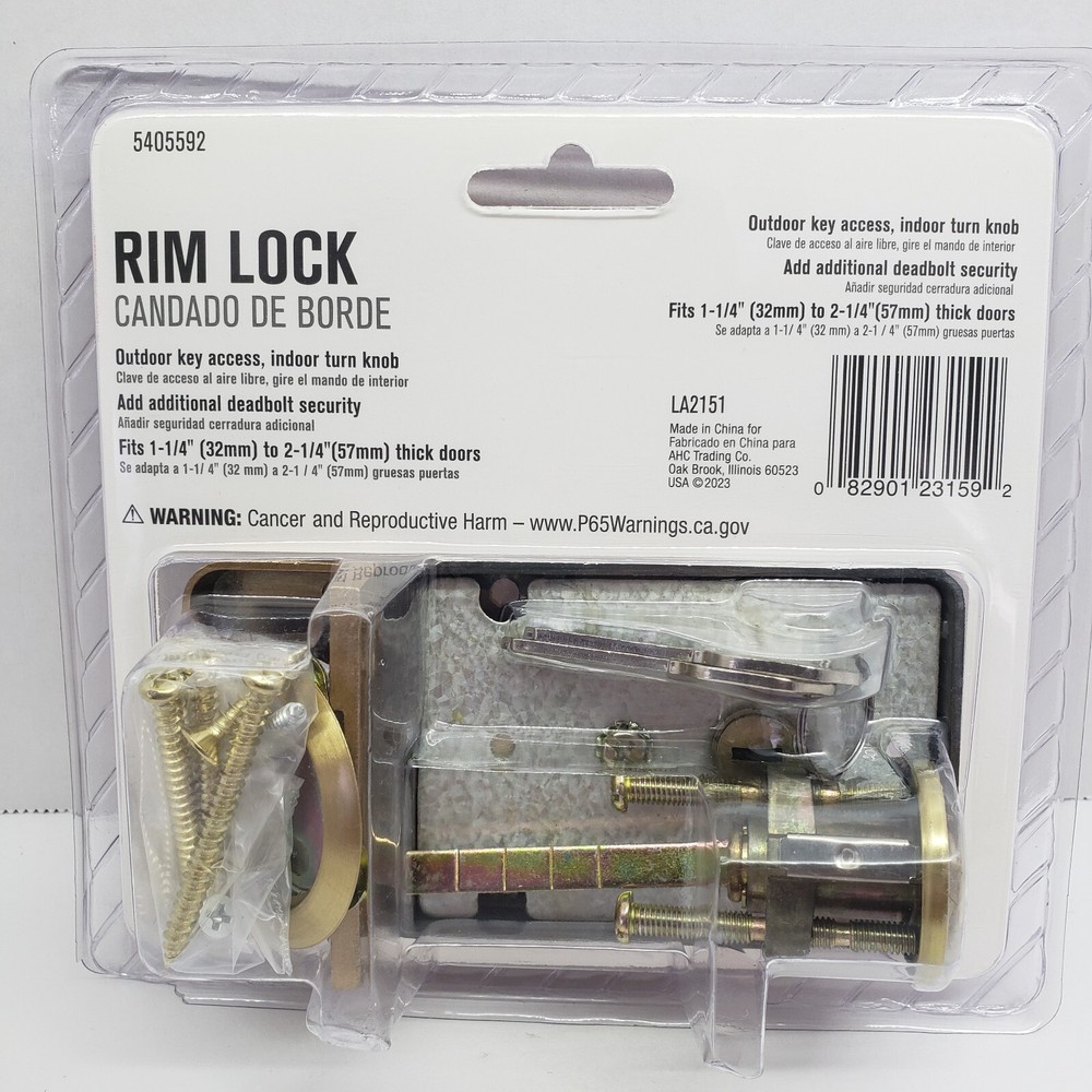 Rim Lock Outdoor Key access, indoor turn knob Fits 1-1/4" to 2-1/4" thick door Please look at my other items for sale, many similar items to this listing. FREE SHIPPING. Thanks For Looking.