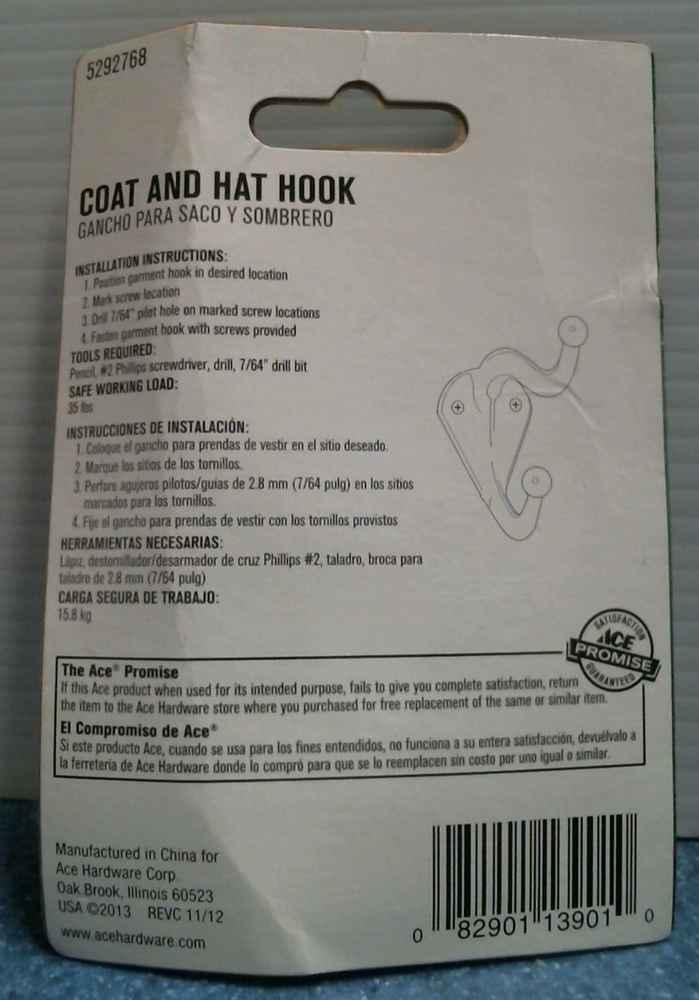 Ace decorative coat & hat hooks have multiple uses. Use for organizing your closet or in bedrooms, bathrooms, entryway, mud room, etc. 2 pack. * Easy to install Mounting screws included Chrome Specifications Brand Name: Ace Product Type: Hook Brand Name: ACE Color: Gold Finish: Bright Brass Hardware included: YEs Installation Type: Wall Mounted Length: 3 inch Material: Brass Number in Package: 2 pack Packaging Type: Carded Projection: 3 inch Self Adhesive: No Size: Small Style: Coat and Hat FREE SHIPPING, RETURN FREIGHT IS NOT REFUNDABLE WE DO NOT HAVE GUARANTEED SHIPPING FOR OUR ITEMS. EBAY DOES AND AUTOMATICALLY ADDS IT TO OUR LISTINGS. PLEASE READ: We buy mostly closeouts, shelf pulls and from liquidators. Therefore boxes, lids, labels can have blemishes and some products will not come with a box and/or manufacture sealed. We will describe all of our items listed to the best of our ability, if an item has a manufacture seal we will not open the seal to test the product (they will be sold AS IS). If the item is opened and/or seal is broken then we will open and check to make sure all of the parts are in working order. We do not guarantee shipping, ebay does. The Post Office as announced many delays in shipping. May take longer for items to arrive as we go through the Chicago hub. We ship whichever way is cheaper, either USPS priority or UPS If it is a heavy item we may contact you for an address instead of P.O. Box if that is what you have listed so it can go UPS We will not ship heavy items to California using the Post Office so please have an address not P.O. Box number or your order will be cancelled