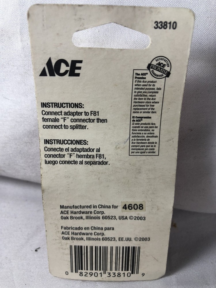 ACE Coaxial Video Male Splice Coax Video Connector Only New In Package 33810. Condition is "New".