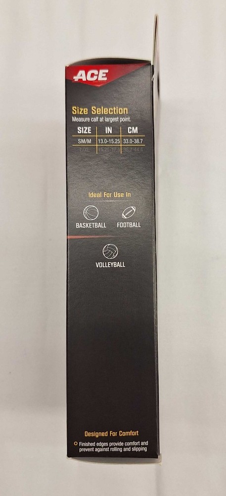 ACE Compression Calf Sleeve – Size S/M – Mild Support – NWT A brand-new ACE (3M) compression calf sleeve designed to help reduce muscle soreness, swelling, and recovery time. Made with soft, breathable material and shaped for optimal fit and full range of motion. Perfect for sports, workouts, running, or daily support. Comes in original box, never used. 💛 Mild compression support 💛 Soft + breathable material 💛 Anatomically designed for comfort + movement 💛 Ideal for basketball, football, volleyball Size: S/M (13.0–15.25 in / 33.0–38.7 cm calf circumference) Condition: New with tags (boxed) Material: Not listed (standard ACE performance blend) Color: Black Made in: China