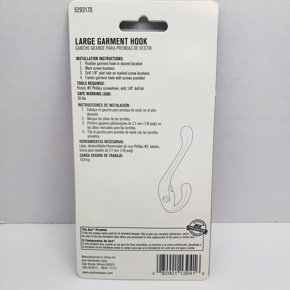 Large Garment Hook White Please look at my other items for sale, many similar items to this listing. FREE SHIPPING. Thanks For Looking.