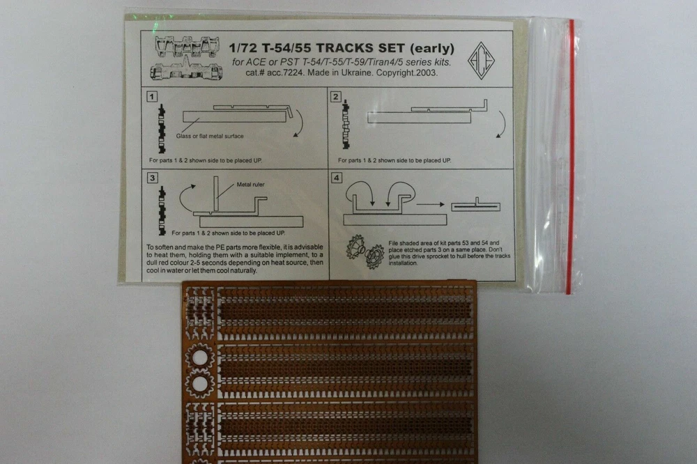 HOBBY-JAR Best Pricing Fast Shipping High Quality ACE PE7224 - T-54/55/59 Tanks Photo-etched Tracks set 1/72 scale Best Price Payment Shipping We accept payment by any of the following methods: PayPal Please pay as soon as possible after winning an auction, as that will allow us to post your item to you sooner! FAST WORLDWIDE SHIPPING! 7-14 business days! SAME DAY SHIPPING! We do ship ONLY with Tracking Number. We do not include any invoices to package to avoid custom taxes. In rare cases if your item is lost or damaged during post, then WE are responsible and will issue either a full refund or replacement. If you are not 100% satisfied with your purchase, you can return the product and get a full refund or exchange the product for another one, be it similar or not. You can return a product for up to 14 days from the date you purchased it. Any product you return must be in the same condition you received it and in the original packaging. Please keep the receipt. Returns Best Pricing Fast Shipping High Quality Photo-etched tracks set for T-54/55/59 tanks. cat#7224 1/72 accessories kit ACE pe7224 Manufacturer: ACE (Ukraine) Code:PE7224 Material: Photo-Etched Scale: 1/72 Condition: New Photoetching set of tracks for tanks T-54/55 scale 1:72 Photo-etched parts are a great way of detail model. Best Pricing Fast Shipping High Quality HOBBY-JAR ACE PE7224 - T-54/55/59 Tanks Photo-etched Tracks set 1/72 scale Best Price Payment We accept payment by any of the following methods: PayPal Please pay as soon as possible after winning an auction, as that will allow us to post your item to you sooner! Shipping FAST WORLDWIDE SHIPPING! 7-14 business days! SAME DAY SHIPPING! We do ship ONLY with Tracking Number. We do not include any invoices to package to avoid custom taxes. In rare cases if your item is lost or damaged during post, then WE are responsible and will issue either a full refund or replacement. Returns If you are not 100% satisfied with your purchase, you can return the product and get a full refund or exchange the product for another one, be it similar or not. You can return a product for up to 14 days from the date you purchased it. Any product you return must be in the same condition you received it and in the original packaging. Please keep the receipt. High Quality Fast Shipping Best Pricing Photo-etched tracks set for T-54/55/59 tanks. cat#7224 1/72 accessories kit ACE pe7224 Manufacturer: ACE (Ukraine) Code: PE7224 Material: Photo-Etched Scale: 1/72 Condition: New Photoetching set of tracks for tanks T-54/55 scale 1:72 Photo-etched parts are a great way of detail model.