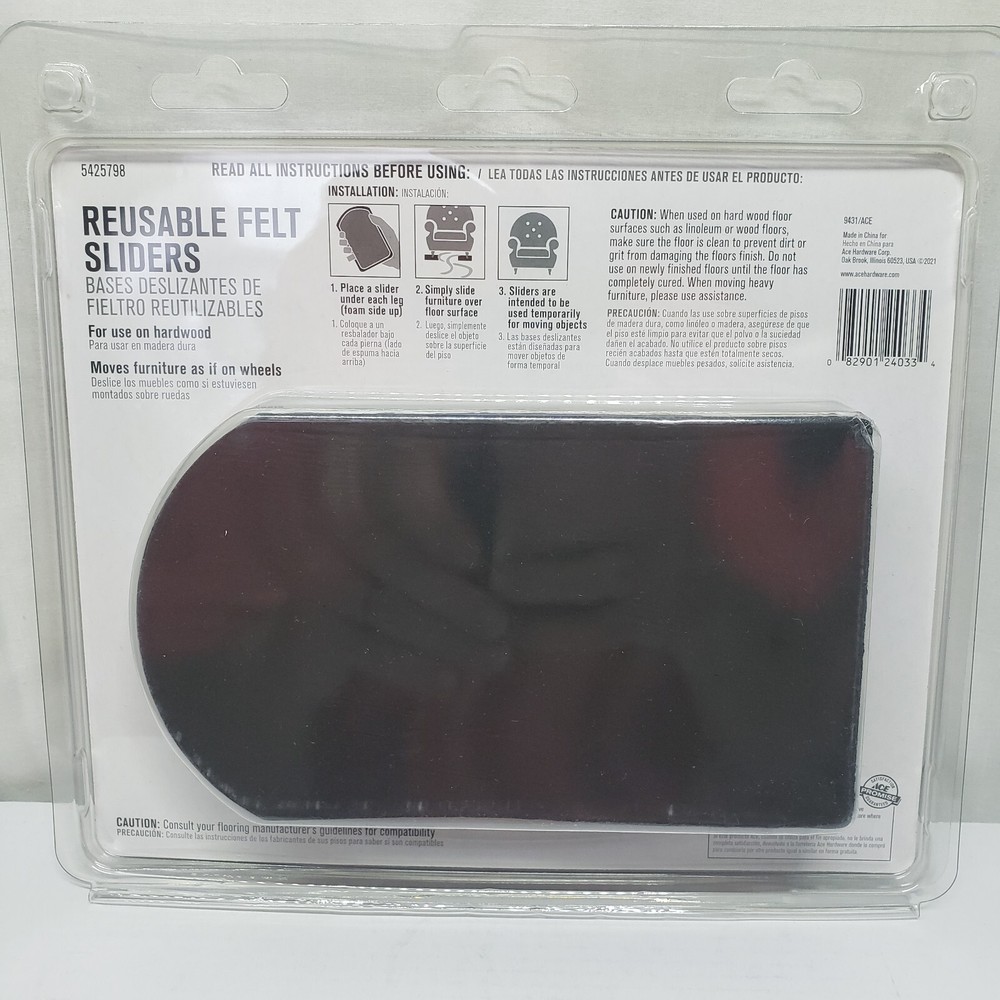 UPC:082901240334gtin13:082901240334Brand:ACESuitable For:Chair, Sofa CouchFeatures:For use on Hardwood FloorsItem Width:4Type:SliderMaterial:FeltMPN:5425798Item Length:7 in