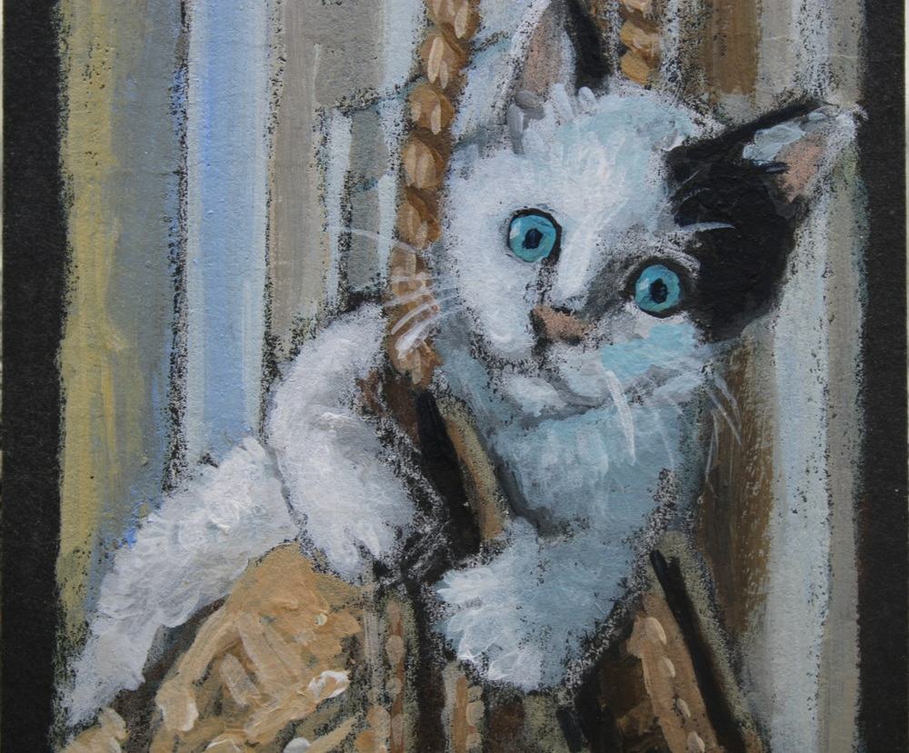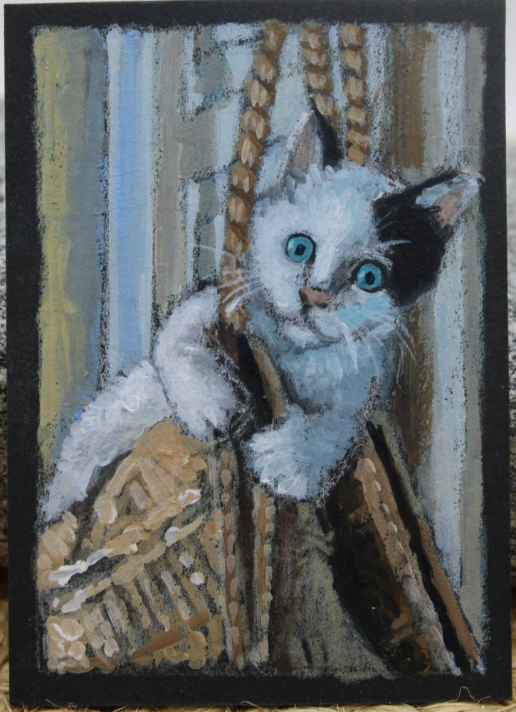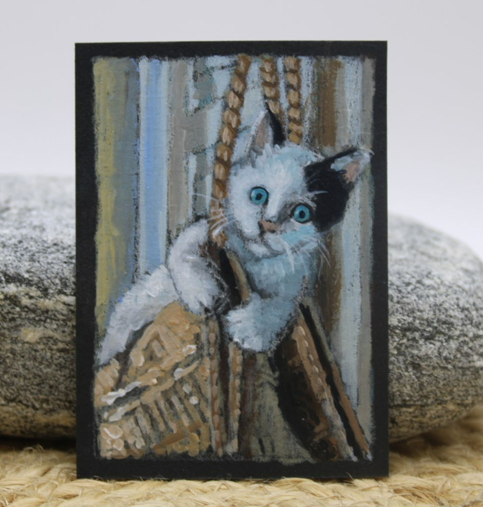ACEO Original Calico Cat Art - Playful Kitty Painting by Rockn Palette