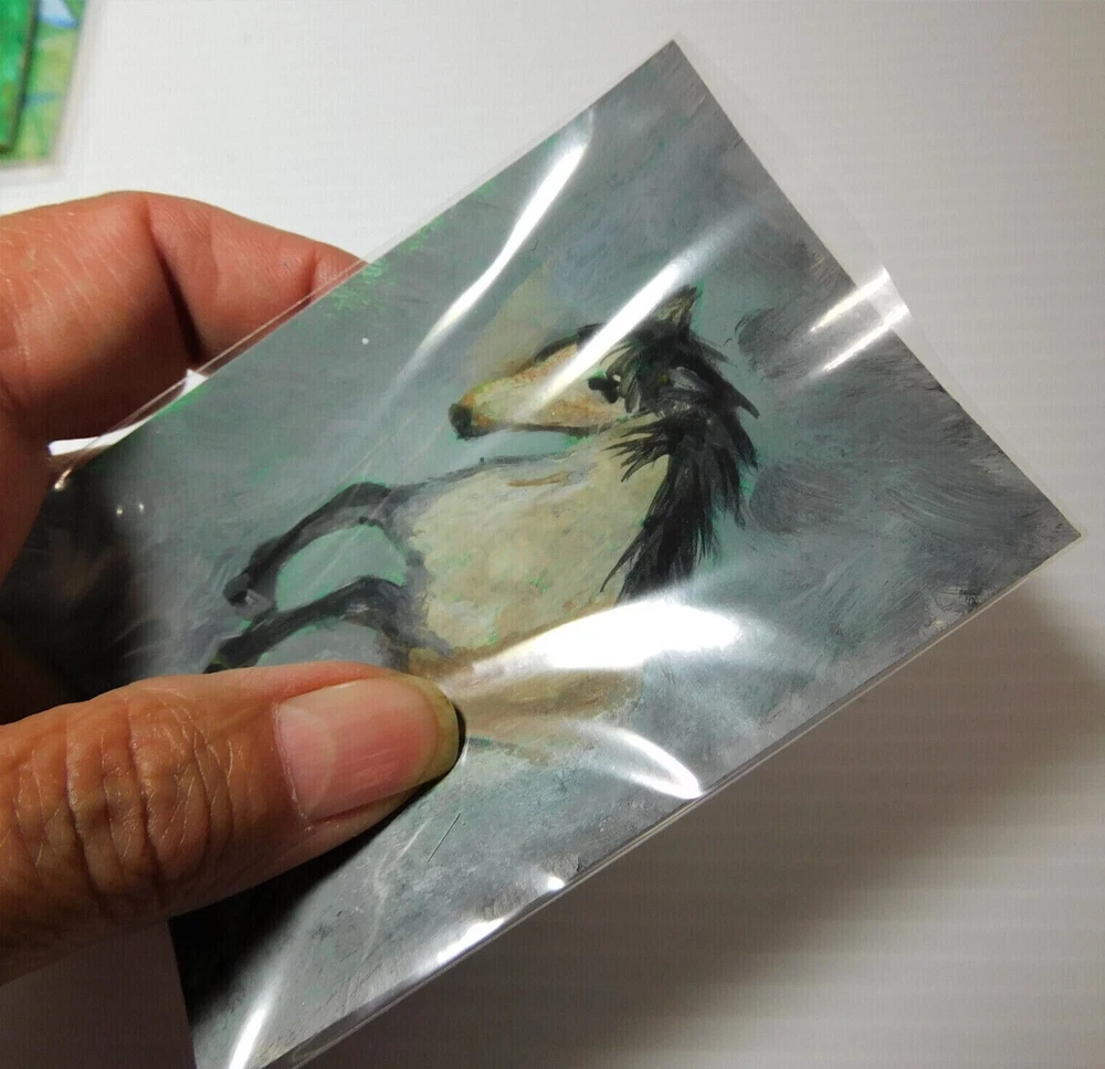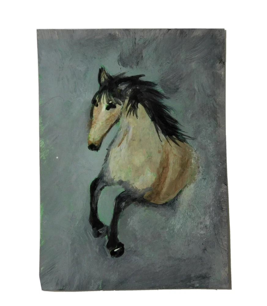 This little ACEO art piece is an original in acrylic done by Rain Crow. The back is signed with details. Your art will be sealed with acrylic varnish and comes in a protective sleeve. Size: 2.5" x 3.5" ACEO stands for Art Card Editions & Originals ATC stands for Artists Trading Cards Note: The photos are zoomed in to provide details. They may appear extremely large in the photos. Please see actual size above. COMBINED SHIPPING is available automatically at checkout. I cannot hold items after you pay. If you wish to combine, ALL items must be paid for at the same time. ACEO Horse