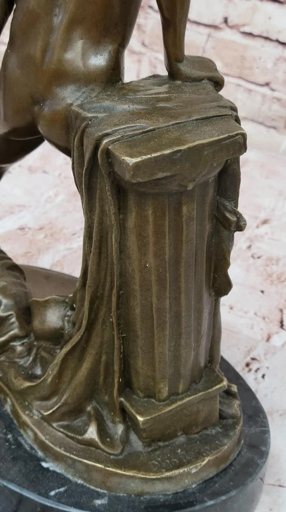 ACHILLES - ANCIENT GREEK WARRIOR SCULTURE FIGURINE IN HOT CAST BRONZE DECOR NR ACHILLES - ANCIENT GREEK WARRIOR SCULTURE FIGURINE IN HOT CAST BRONZE DECOR NR Condition : This sculpture is in perfect condition Bronze Dimensions with Marble Base: Height 14.5" X Width 10" Marble Dimensions: Diameter 10" Height without base:13.5" Weight:17 LBS Inventory:21XN22899212 Crafted by the skilled hands of Dino Decarlo, this bronze statue pays homage to the valor and triumph of ancient Greek warriors. Cast in a rich brown patina, the statue portrays a proud warrior, captured in a moment of triumph after a victorious battle. With one knee bent in a gesture of reverence and gratitude, he raises his spear high in salute to his homeland, his expression exuding exultation and pride. The intricate details of the warrior's chainmail garment, breastplate, helmet, and shield showcase the artist's meticulous craftsmanship, while the delicate patterns adorning his sandals and shin greaves add to the statue's regal aura. Every aspect of the warrior's attire and demeanor speaks to his unwavering courage and unwavering commitment to his country. As a testament to the enduring spirit of ancient Greek warriors, this bronze statue serves as a timeless symbol of bravery and resilience. Whether displayed as a centerpiece in a collector's home or as a focal point in a gallery, it commands attention and admiration, inviting viewers to reflect on the valor and legacy of those who came before us. Large Signed Dino Decarlo Greek Warrior Spartan Bronze Statue Sculpture Figurine Video will open in a new window Using the eBay App? Paste link into a browser window: [isdntekvideo] Shipping Terms : Most of our items are shipped via USPS (United States Postal Service) mail or UPS. Most orders are shipped within 24-48 hours of purchase. Please be aware that not all items are available for USPS shipping due to size and weight. We do ship to Hawaii, Alaska, Canada, Puerto Rico, APO/AE, and U.S. Virgin Islands, however, an additional charge may be required. Please contact us before making any purchases in these areas. For Non-USA customers, you may be responsible for all duty, tax, brokerage fees that may be due upon delivery (shipping costs cover freight charges only). We also ship internationally. Please refer to the "Shipping and Handling" chart for the rates for each area. Payment : We accept just about any form of payment. PayPal, Master Card, Visa or American Express credit cards. Money orders, cashiers checks, and even personal or business checks. For governmental institutions, we will also accept a purchase order. Please understand that for personal or business checks we have to wait for the check to clear (usually 7 days) before shipping. Condition : New Detailed Hand Crafted Hot Cast Bronze ~Not Resin~ Satisfaction Guaranteed. This is Stock Photo, Slight Color Variation!! Listing and template services provided by inkFrog