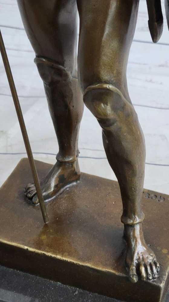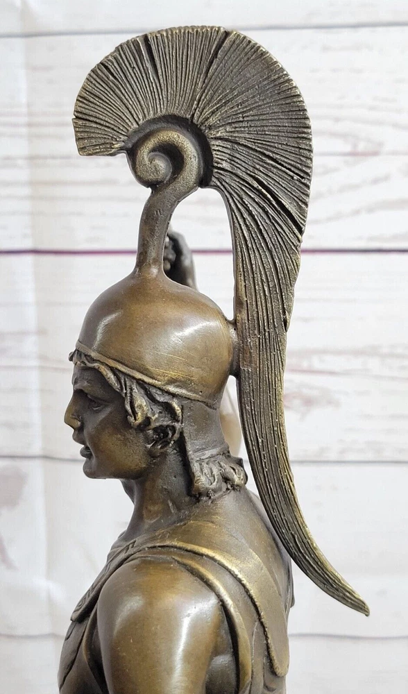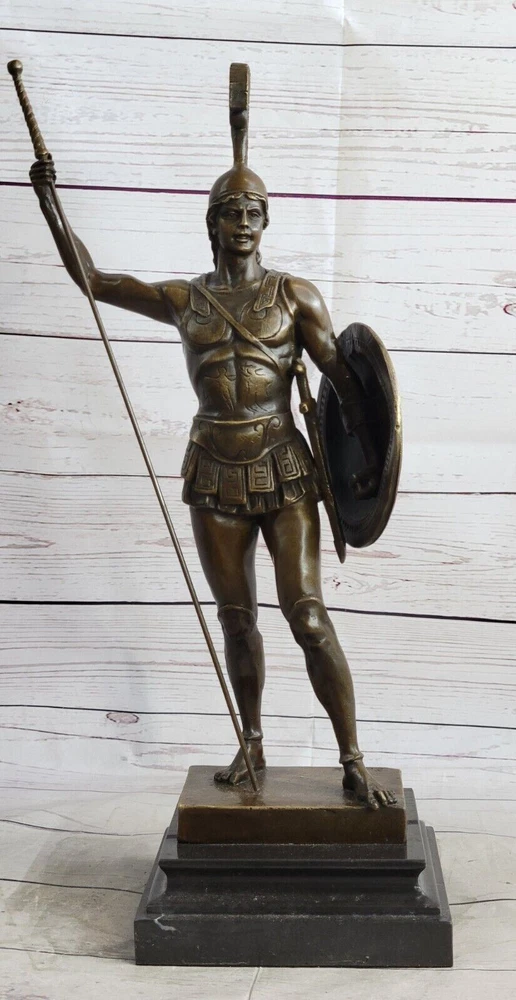 ACHILLES W/ SPEAR & SHIELD GREEK MYTHOLOGY Sculpture Statue Pure Bronze Sale ACHILLES W/ SPEAR & SHIELD GREEK MYTHOLOGY Sculpture Statue Pure Bronze Sale Condition: This sculpture is in perfect condition. Bronze Dimensions with Marble Base: Height 19.5"" x Width 8 ""Marble Dimensions: 6"" X 6""Height without base: 16.5"" Weight : 14 LBSInventory : 45YRD11278054 German bronze figure modeled as the mythological warrior Achilles, dressed in Hoplite uniform including helmet, by J. Gotz (Johannes Gotz, German, 1865-1934), The bronze handmade sculpture was cast using the ancient method of lost-wax casting and stained with a brown patina finish for preservation. It is mounted upon a black variegated marble base with the artist J. Gotz signature. Shipping Terms : Most of our items are shipped via USPS (United States Postal Service) mail or UPS. Most orders are shipped within 24-48 hours of purchase. Please be aware that not all items are available for USPS shipping due to size and weight. We do ship to Hawaii, Alaska, Canada, Puerto Rico, APO/AE, and U.S. Virgin Islands, however, an additional charge may be required. Please contact us before making any purchases in these areas. For Non-USA customers, you may be responsible for all duty, tax, brokerage fees that may be due upon delivery (shipping costs cover freight charges only). We also ship internationally. Please refer to the "Shipping and Handling" chart for the rates for each area. Payment : We accept just about any form of payment. PayPal, Master Card, Visa or American Express credit cards. Money orders, cashiers checks, and even personal or business checks. For governmental institutions, we will also accept a purchase order. Please understand that for personal or business checks we have to wait for the check to clear (usually 7 days) before shipping. Condition : New Detailed Hand Crafted Hot Cast Bronze ~Not Resin~ Satisfaction Guaranteed. This is Stock Photo, Slight Color Variation!! Listing and template services provided by inkFrog