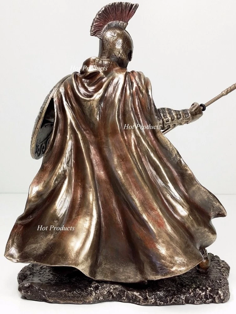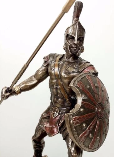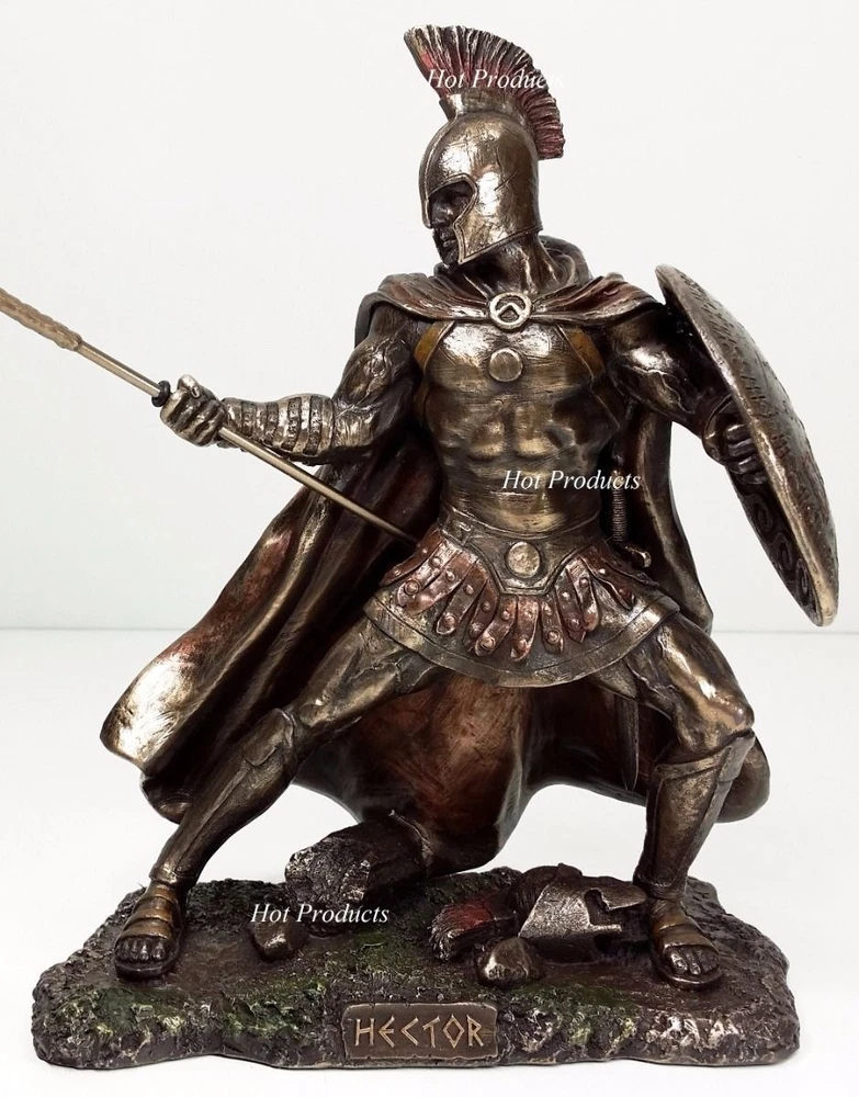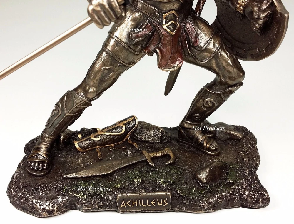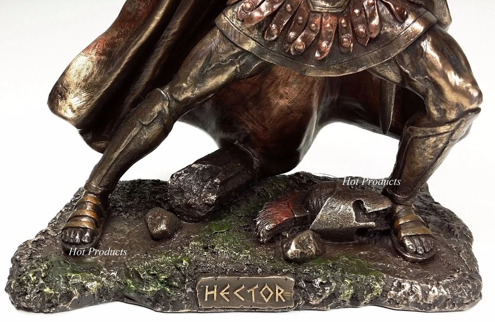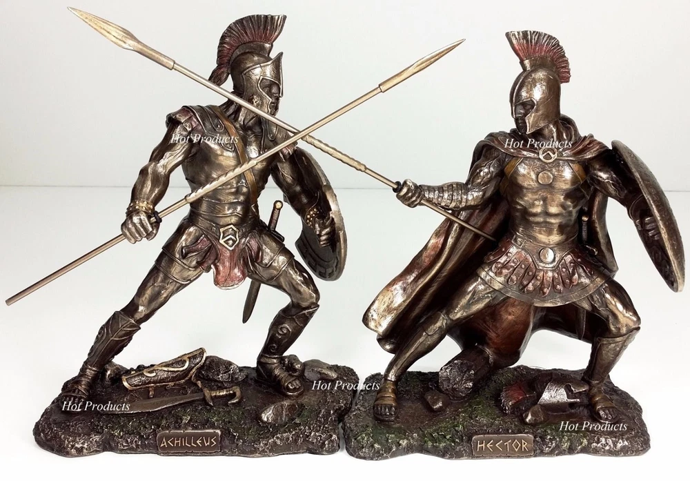 Brand new statues expertly cast in a bronzed resin material with a rich antique bronze finish. The superb detailing and hand painted accents really bring these statues to life. Great addition to anyone's decor! Overall Dimensions: 13 1/2" x 5" x 9 1/4" (space needed to display) Dimensions Achilles: Height: 9" Base: 7" x 3.5" Spear Length: 9 3/4" Weight: 1 Lb 9 oz (without package) Dimensions Hector: Height: 9.5" (to sword tip) Height: 8 3/4 (top of plume) Base: 7" x 3.5" Spear Length 9 3/4" Weight: 1 Lb 14 oz (without package) Brand: Veronese Design Listing and template services provided by inkFrog