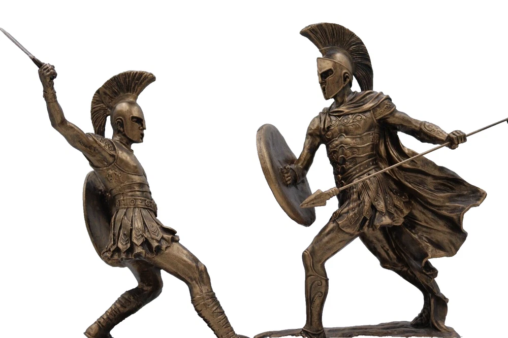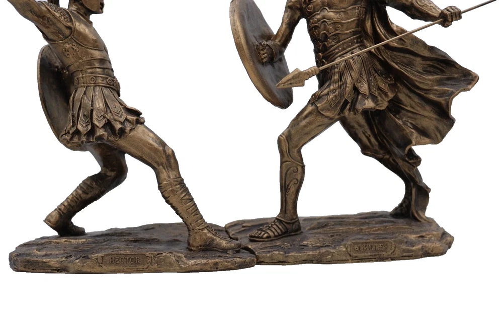 Sculptures will be sent as a set. Hector - Height: 29 cm - Width: 21 cm - Depth: 25 cm Achilles - Height: 29 cm - Width: 18 cm - Depth: 17,5 cm Hector and Achilles figurine is a magnificent representation of two legendary heroes from the epic Trojan War. The Trojan War, a pivotal event in Greek mythology, has left an indelible mark on both Greek and world culture, and the names of Hector and Achilles continue to resonate through the ages. Our figurine encapsulates the dramatic battle scene between Hector and Achilles, showcasing their distinctive armor, weapons, and the intensity of their confrontation. It is a testament to the timeless appeal of these heroic figures and their place in the annals of history. Owning the Hector and Achilles in the Battle Scene from Troy figurine means owning a piece of epic mythology, a reminder of the complexities of heroism, and a tribute to the enduring power of these iconic characters. This figurine is an embodiment of the human spirit's unyielding determination and courage in the face of adversity. Display it proudly in your home, office, or as part of your collection, and let it serve as a constant source of inspiration and reflection on the timeless themes of heroism and sacrifice. Creation process: Our products are 100& handmade. The material used in our creations is 90% marble and 10% resin (works as a glue). The material is poured into our handmade mold and then each detail is finished by hand. It is a long process that needs a lot of precision and love for this result! This collection of statues is remarkable in the details achieved. Any serious collector will appreciate the meticulous care taken in all the small details that complete the sculpture. The hand-painted color accents and antique finish. This statue feels very solid when held, and is quite heavy for its size. Each statue comes packaged in sculptured polystyrene inner packing for safe world-wide shipping. ✈ We are using express shipping world wide. All items are shipped via mail with tracking number. Shipping usually takes : - EU: up to 3-5 days; - US/CA: up to 3-5 days - Everywhere Else: up to 1 weeks. If you have any questions feel free to contact us Shop confidently with express shipping! Regards