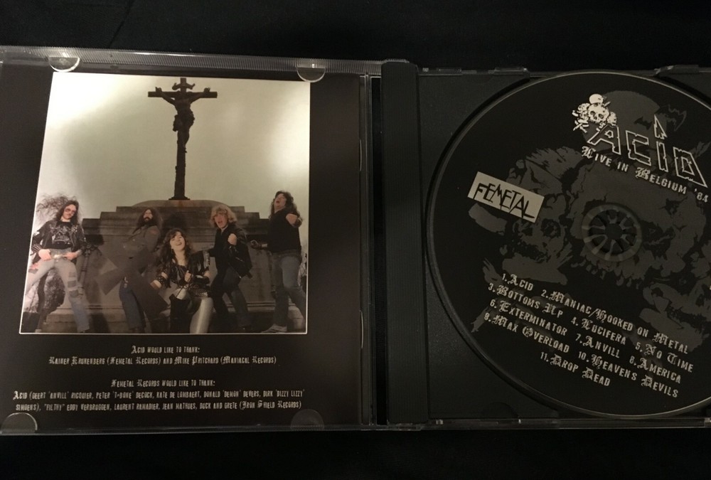 ACID "Live in Belgium 1984" CD VERY RARE! BRAND NEW / NEVER PLAYED Amazing live album from this classic 80’s belgian band!!! Heavy-Speed metal at its best with killer female vocals ! Recorded on June 2nd 1984 in Leuven, Belgium Tracks: 1. Acid 2. Maniac 3. Hooked on Metal 4. Bottoms Up 5. Lucifera 6. No Time 7. Exterminator 8. Anvill 9. Max Overload 10. Heavens Devils
