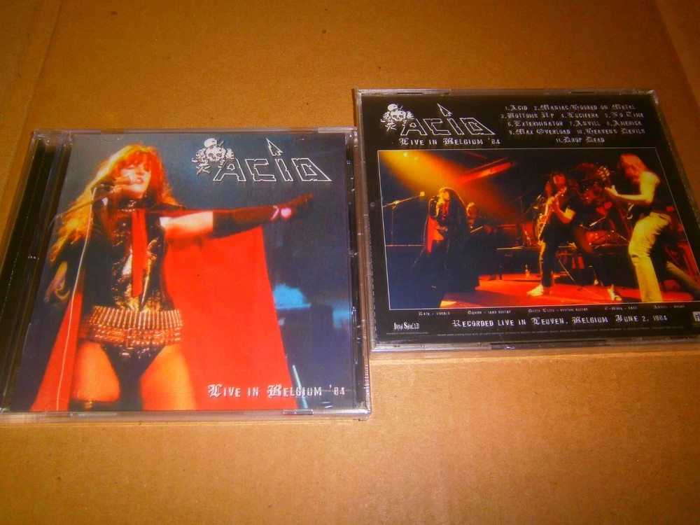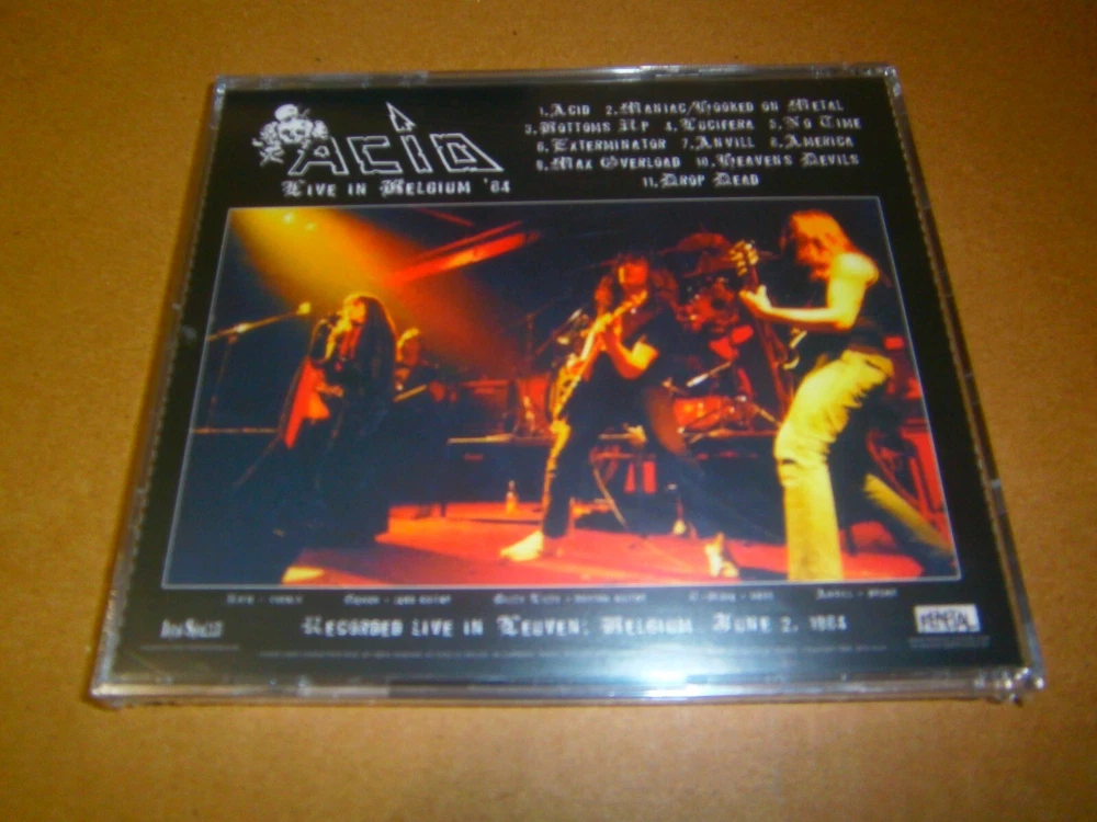 Acid - Live in Belgium '84. 2010 CD format of their official live album recorded in Leuven, Belgium, June 2nd, 1984, with 11 tracks of Speed Metal. Limited Edition. Sealed Item. Highly Recommended for Collectors.