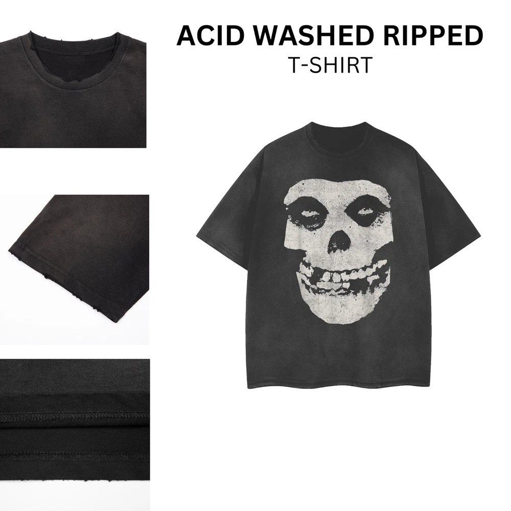 [ACID WASHED RIPPED] Misfits Distressed Distressed Vintage Feel T-Shirt 102283