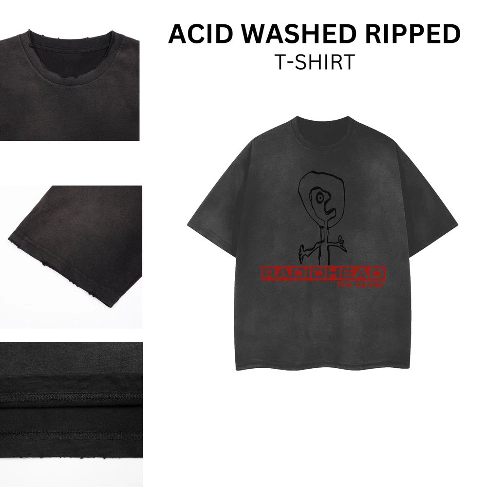 [ACID WASHED RIPPED] RADIOHEAD '95 Distressed Vintage Feel T-Shirt Unisex 101194