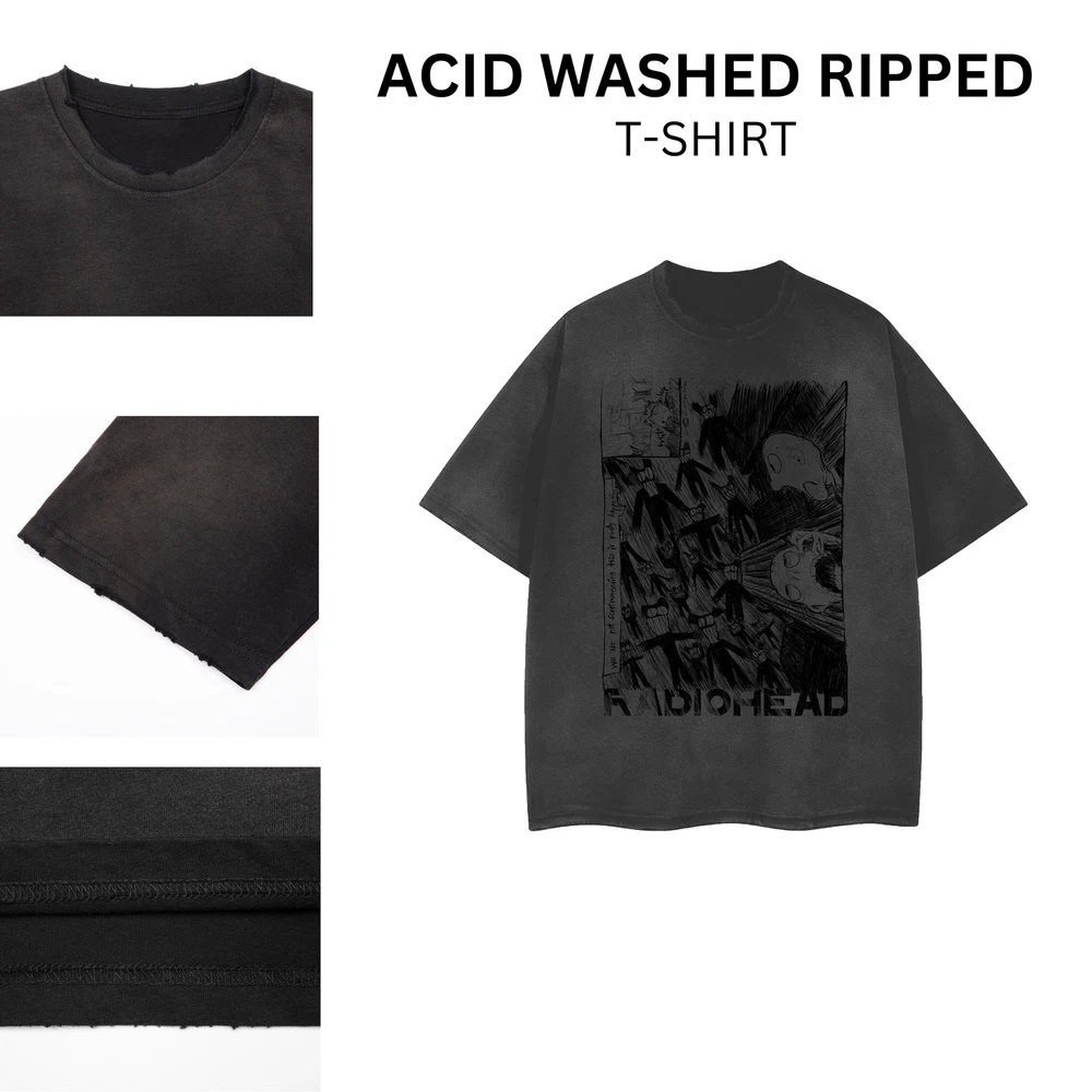 [ACID WASHED RIPPED] RADIOHEAD Distressed Vintage Feel T-Shirt Unisex 101469