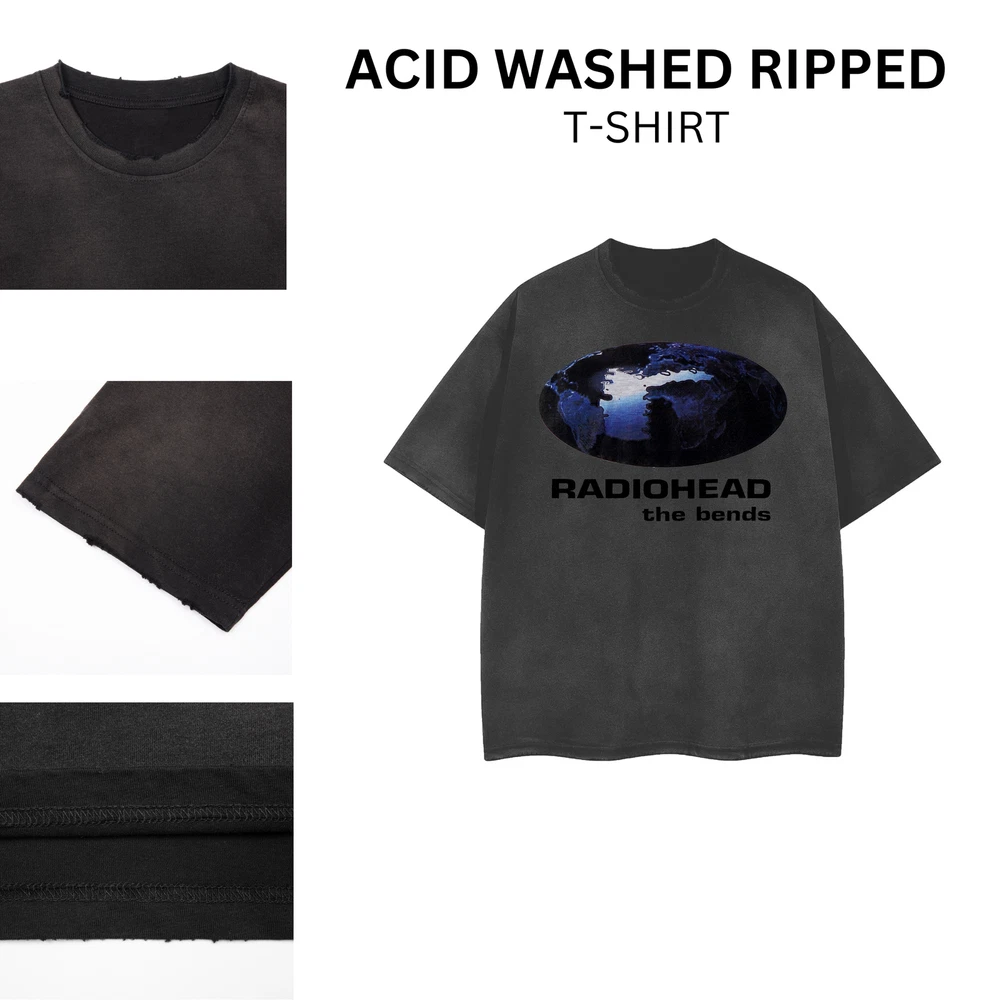 [ACID WASHED RIPPED] Radiohead 1995 Distressed Vintage Feel T-Shirt 101409
