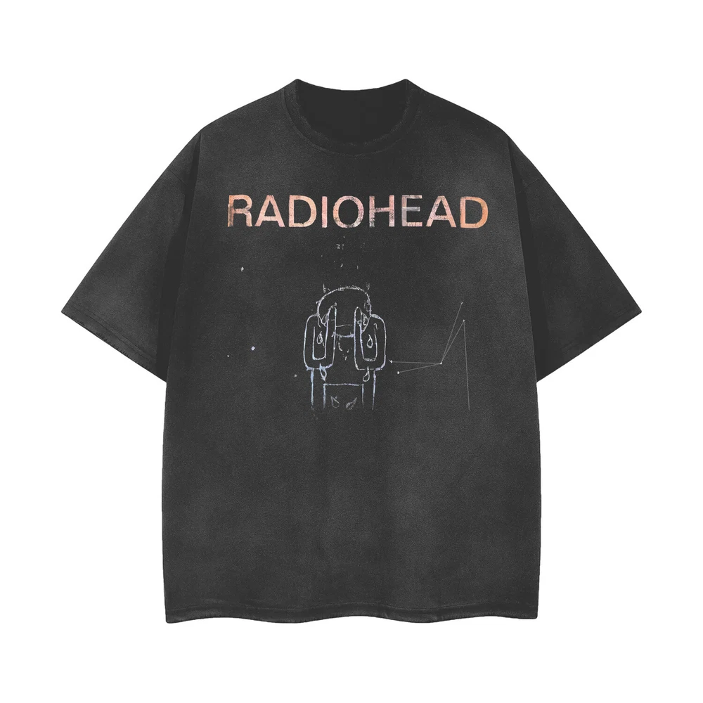 [ACID WASHED RIPPED] Radiohead 2001 Distressed Vintage Feel T-Shirt 101868