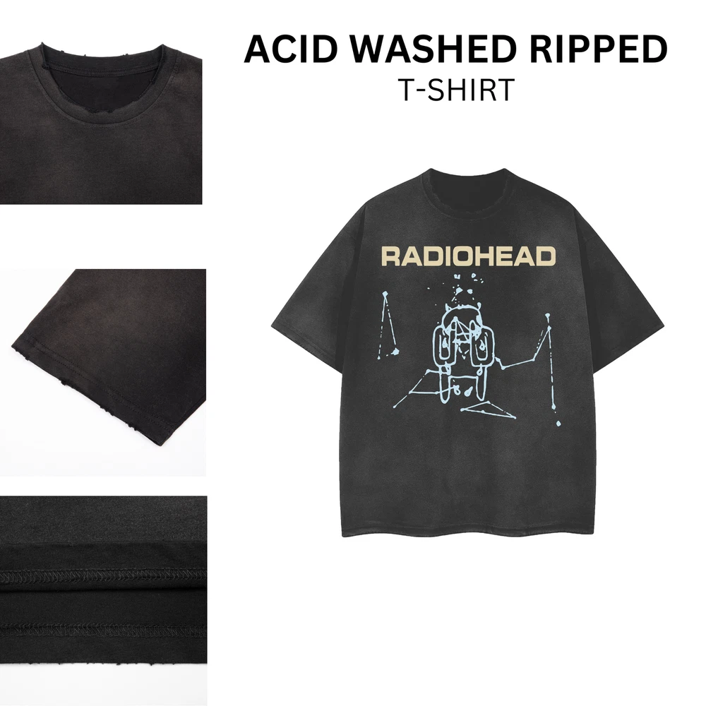 [ACID WASHED RIPPED] Radiohead 2001 Distressed Vintage Feel T-Shirt 102997